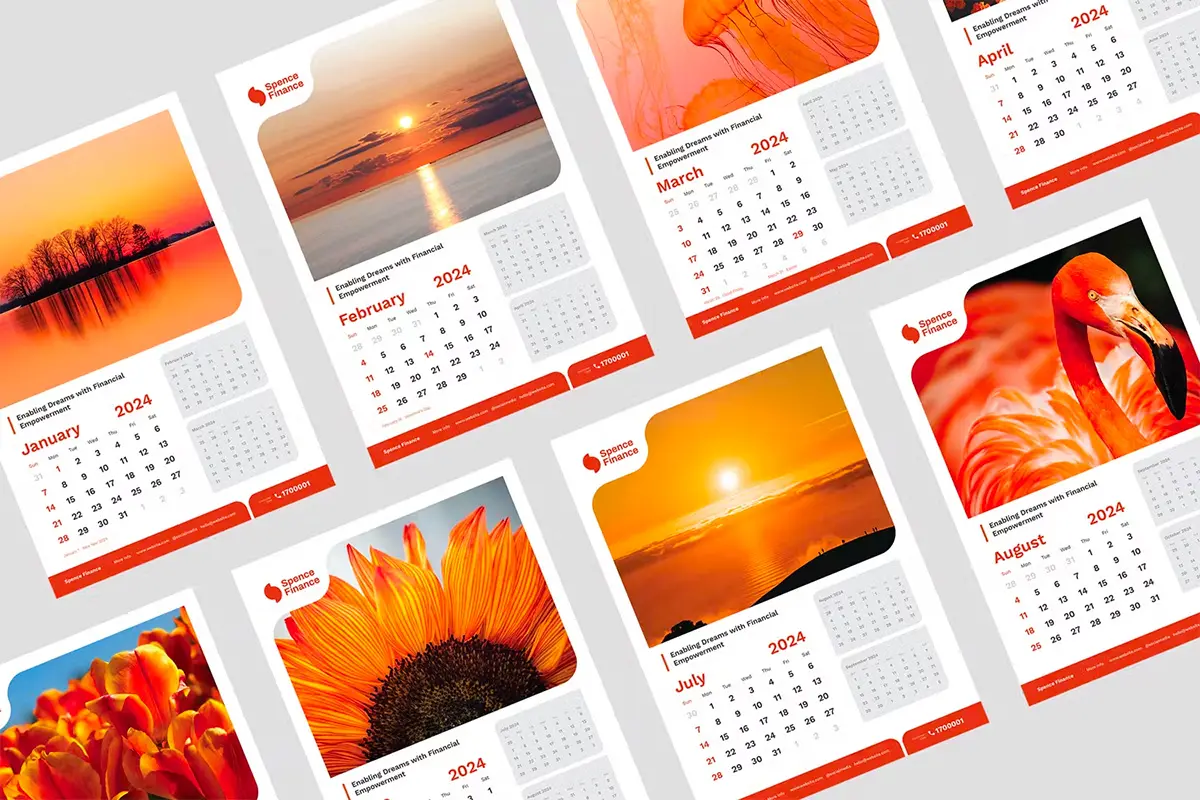 2024 Calendar Template 圈装2024年日历月历极简布局版式设计ai源文件