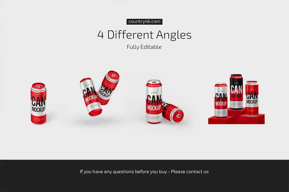 500ml Glossy Metallic Can Mockup Set 500ml能量饮料易拉罐模型品牌包装设计贴图ps样机素材