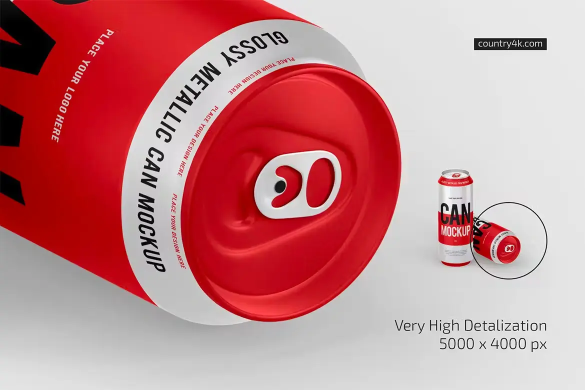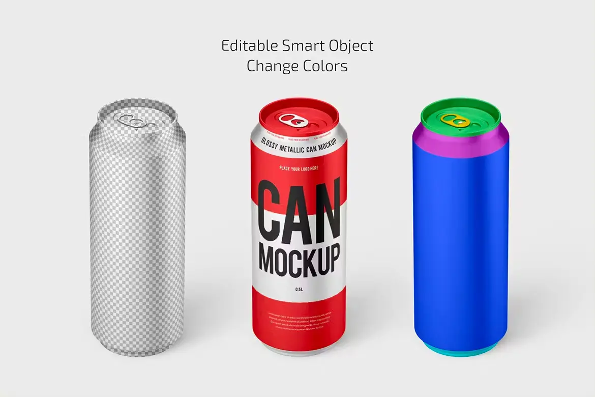 500ml Glossy Metallic Can Mockup Set 500ml能量饮料易拉罐模型品牌包装设计贴图ps样机素材