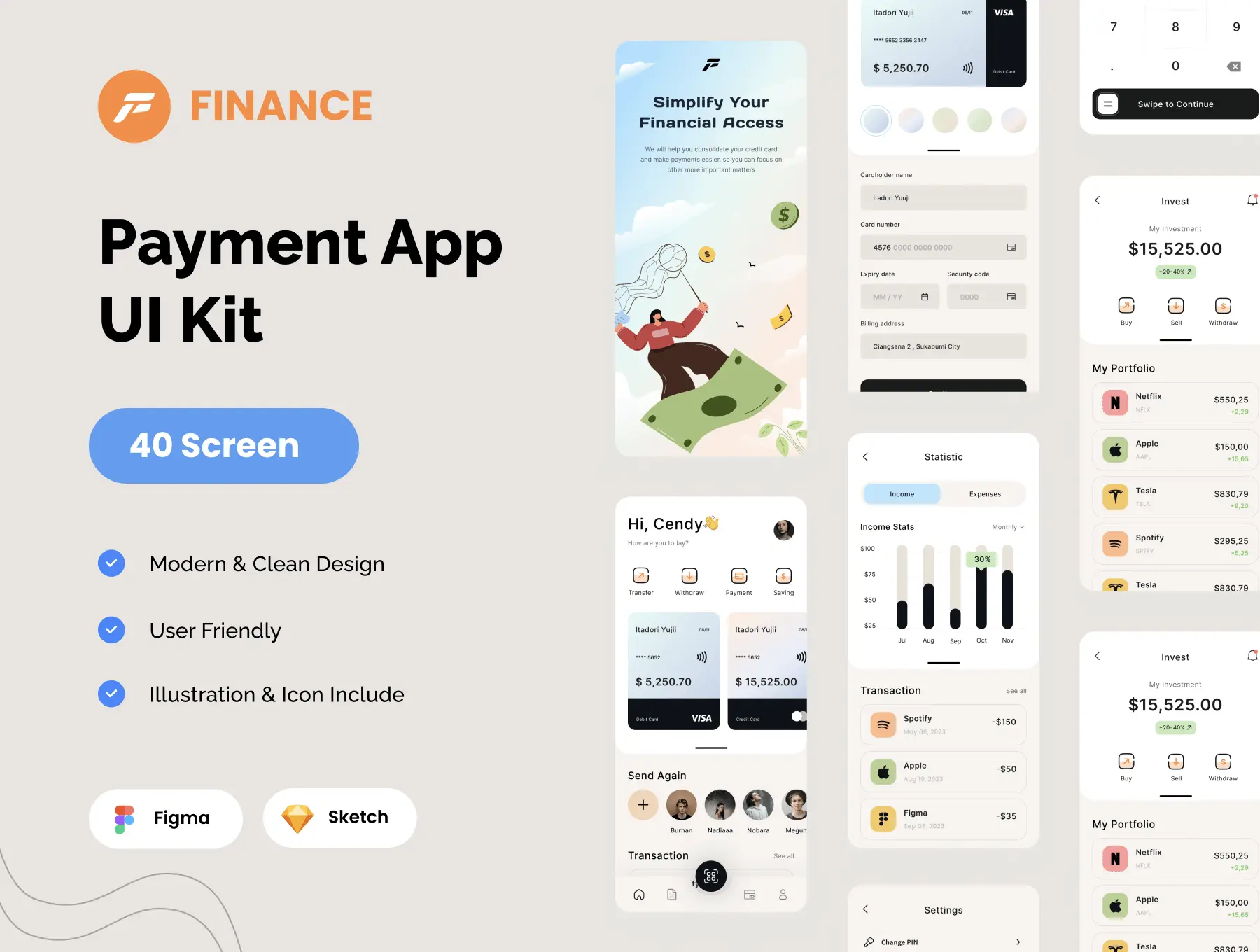 Payment App UI KIT Fintech 40+高级金融科技理财电子钱包银行APP软件界面设计Figma模板套件