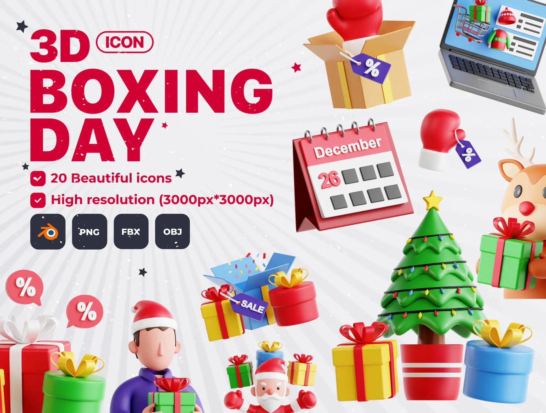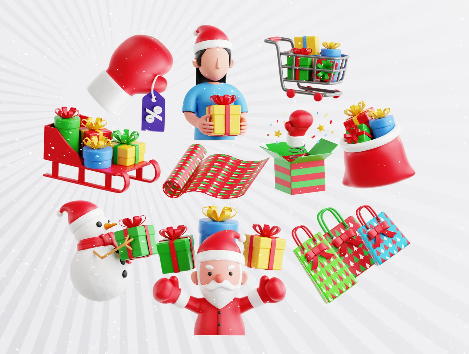 Boxing Day 3D Icon Set 20款3D立体卡通圣诞节购物电商大促礼物插图插画webp免抠图片素材