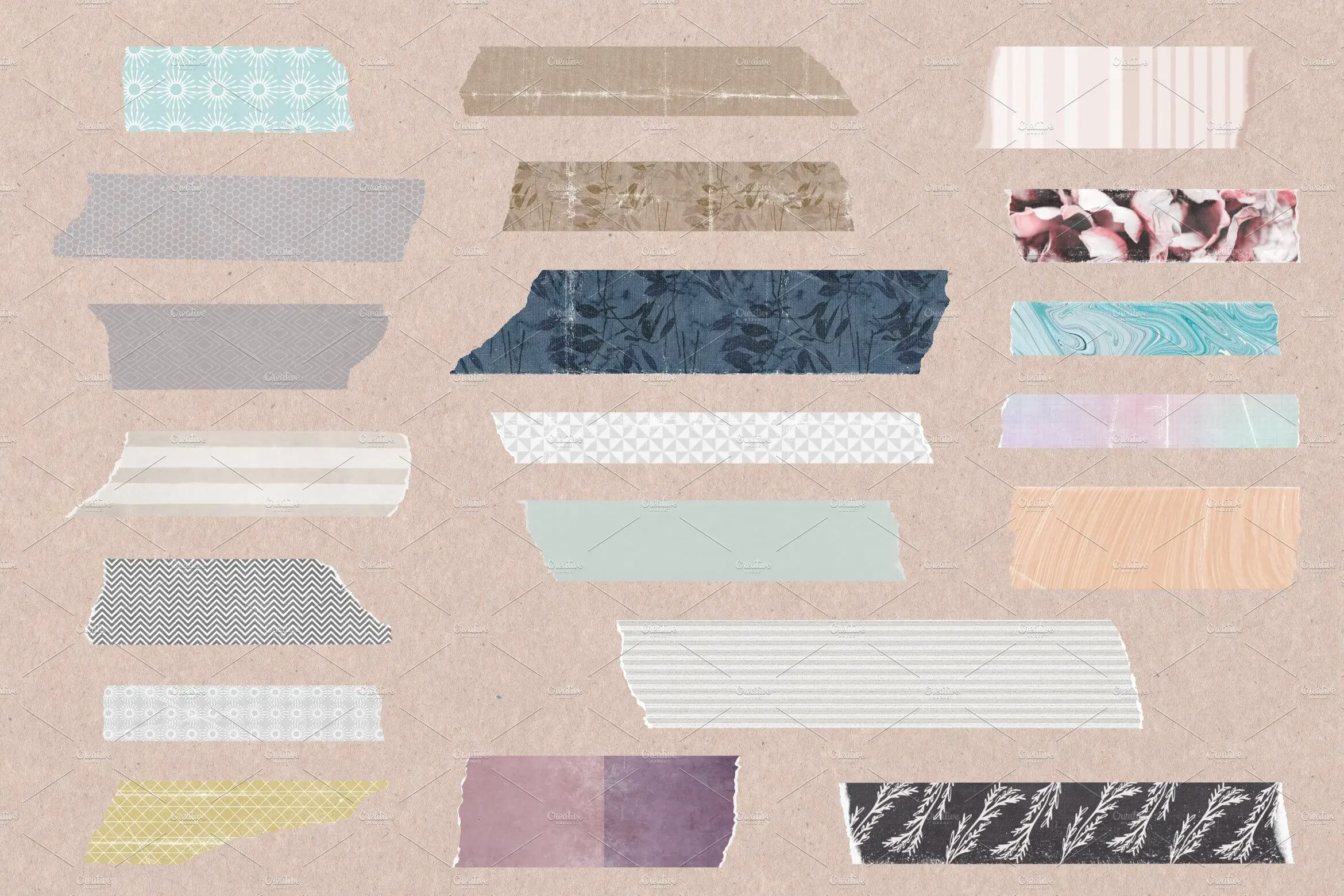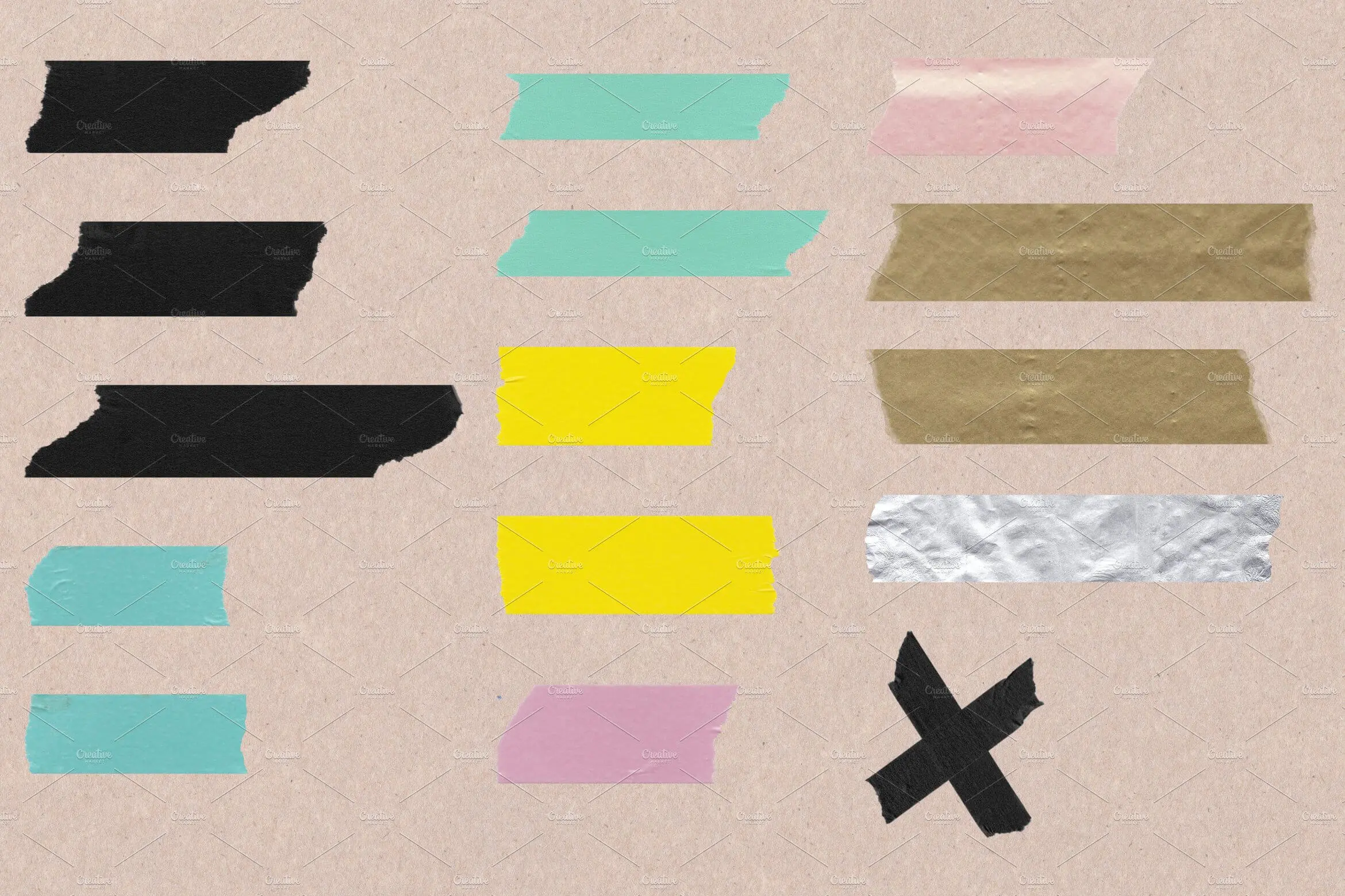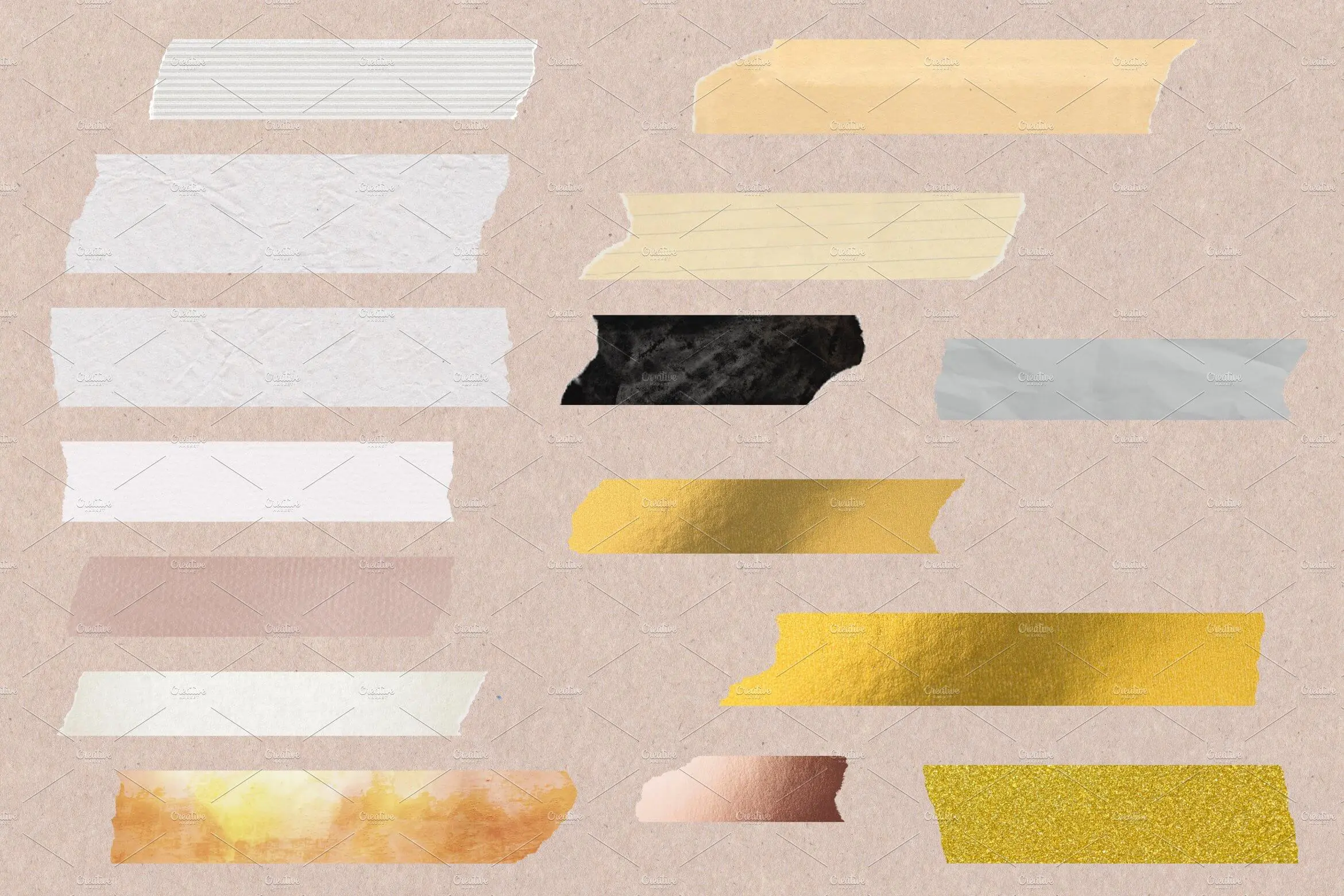 Artist Tape Variety Pack 50款多彩拼贴元素撕裂胶带PNG免抠图设计素材