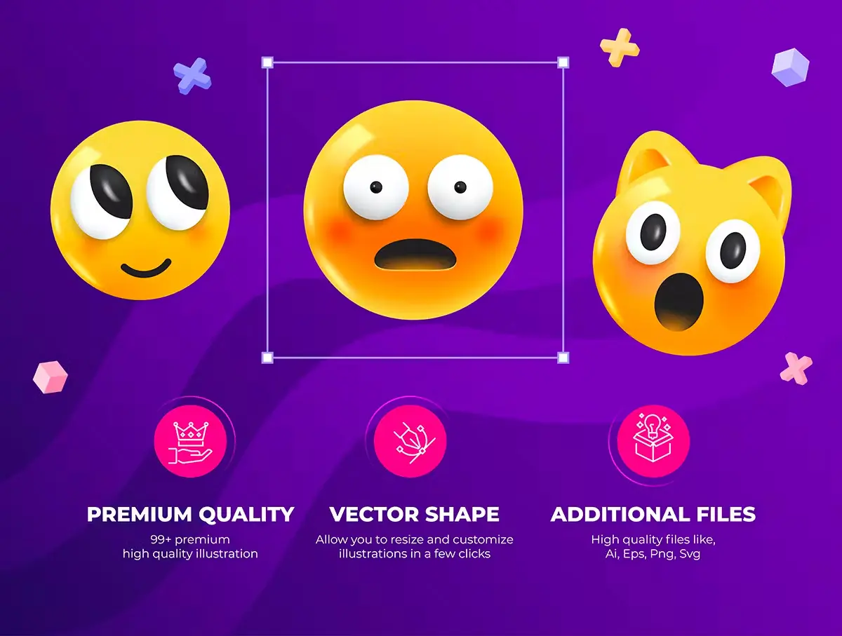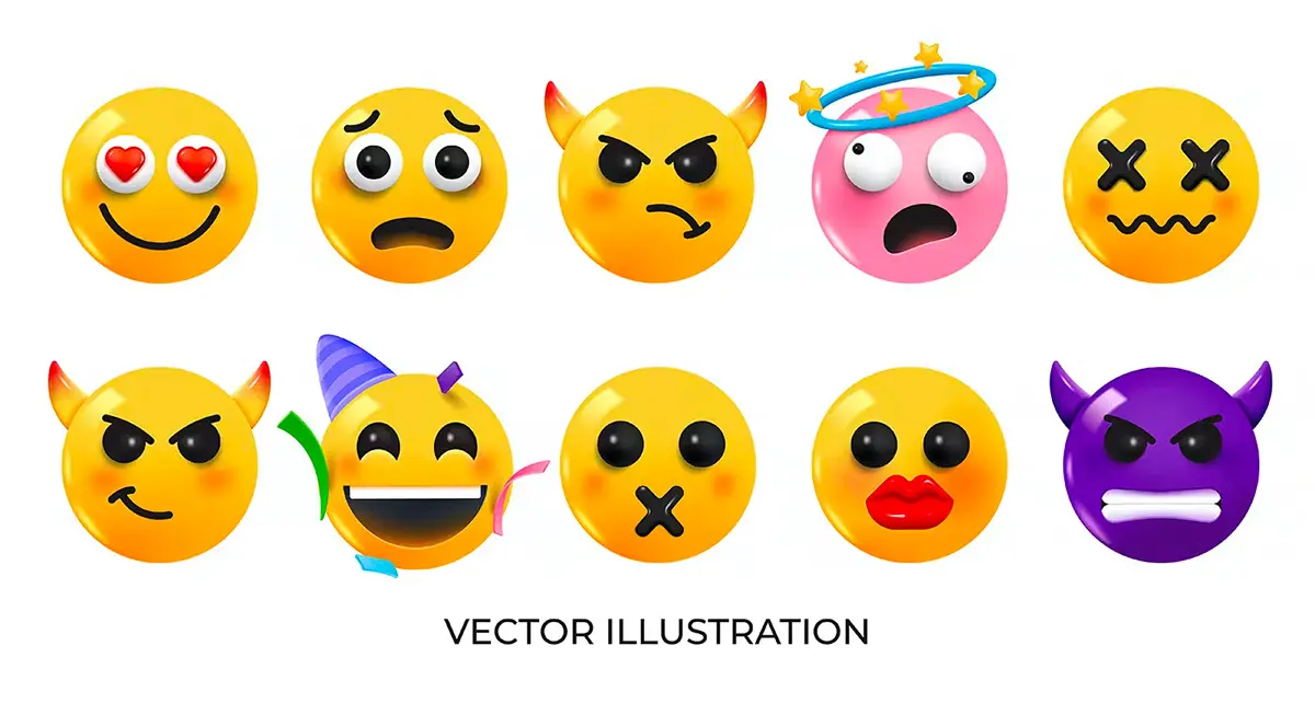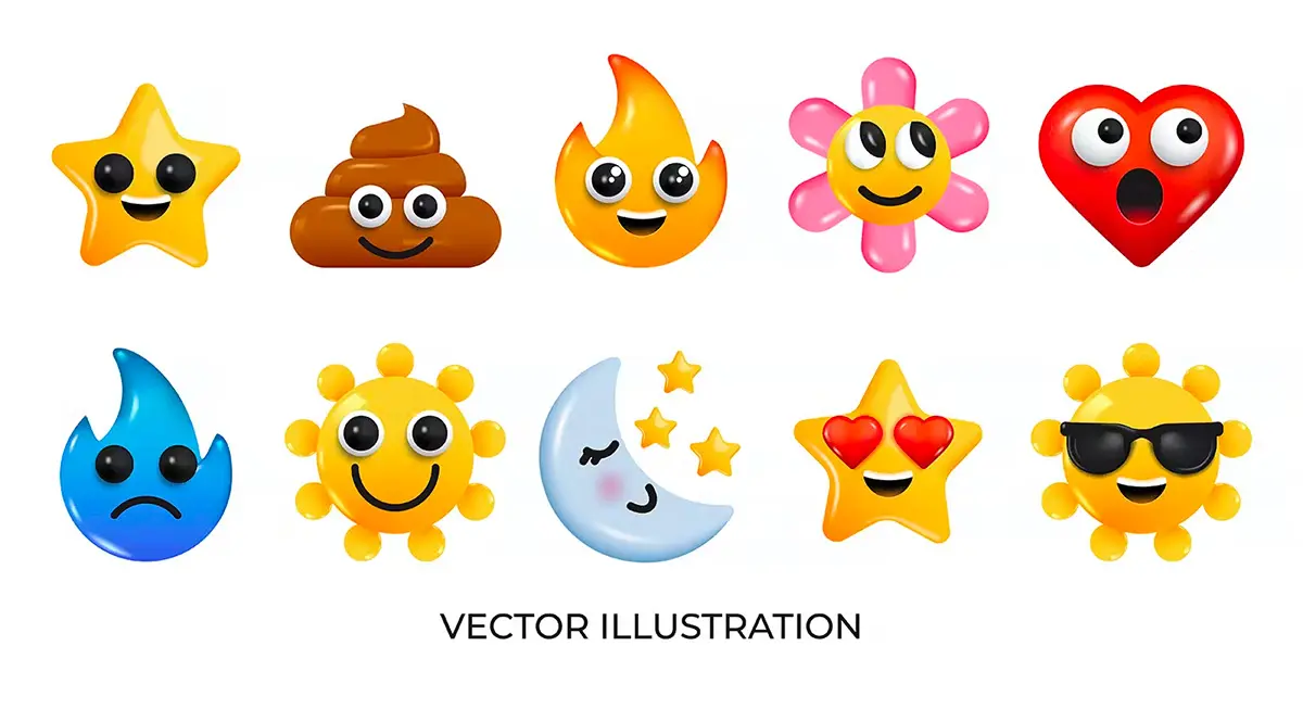 3D Emoji pack 100款3D趣味卡通全套Emoji表情包插图插画webp免抠ai矢量设计素材