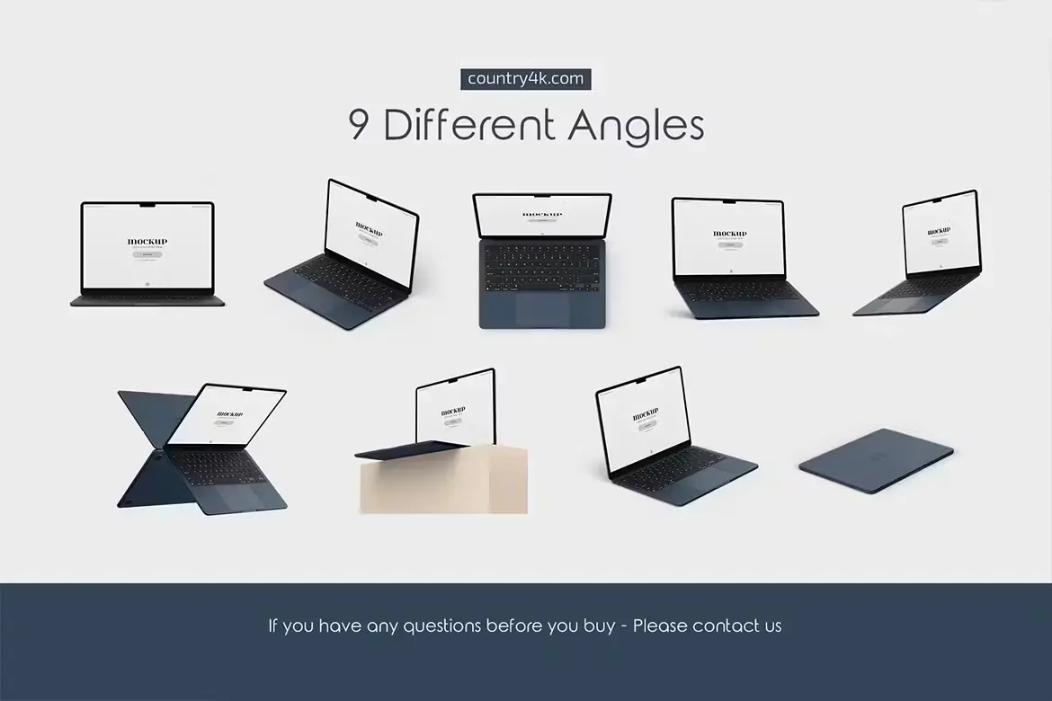 Macbook Air M2 Mockup Set 苹果Macbook Air M2笔记本设备模型多角度展示屏幕贴图ps样机素材