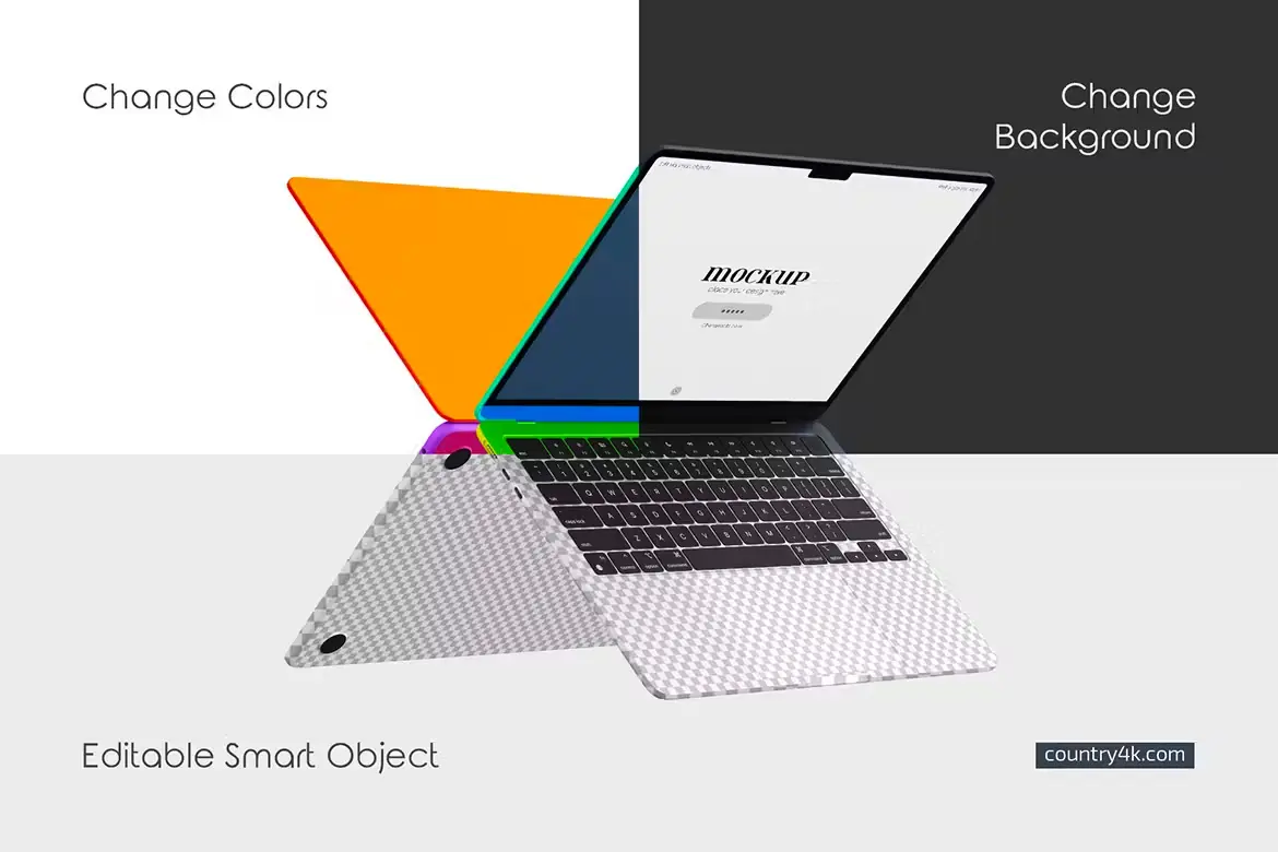 Macbook Air M2 Mockup Set 苹果Macbook Air M2笔记本设备模型多角度展示屏幕贴图ps样机素材