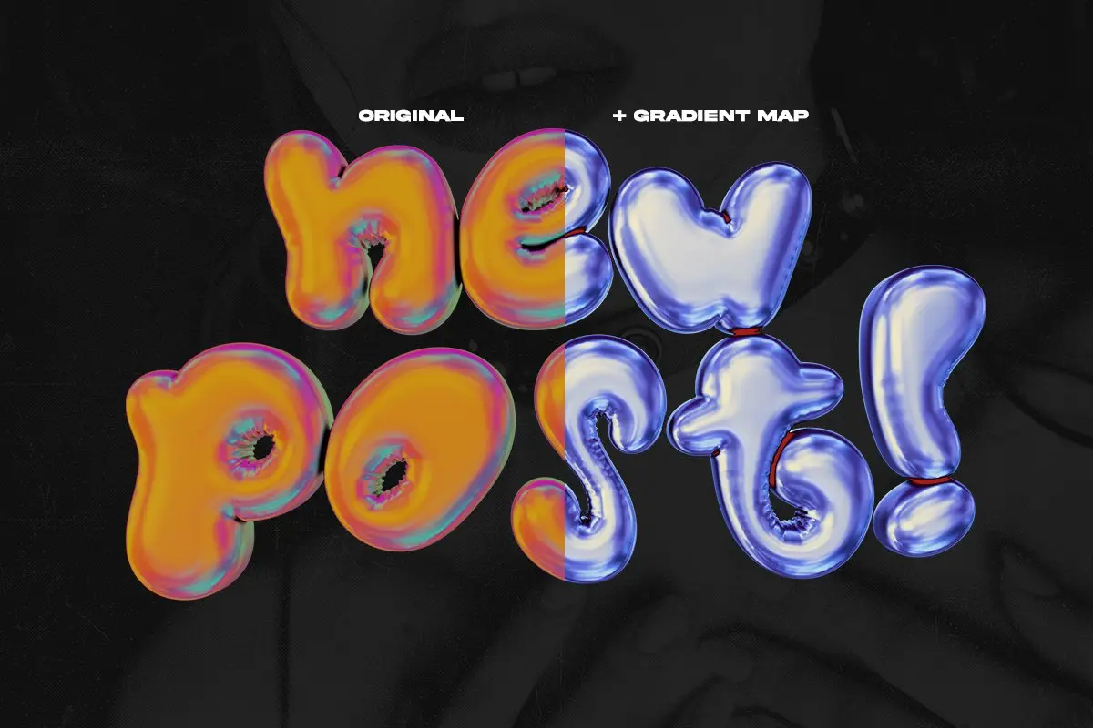 Inflated Stickers – 3D PNGs 504款现代创意金属镀铬3D立体抽象艺术气球英文字母PNG免抠图设计素材