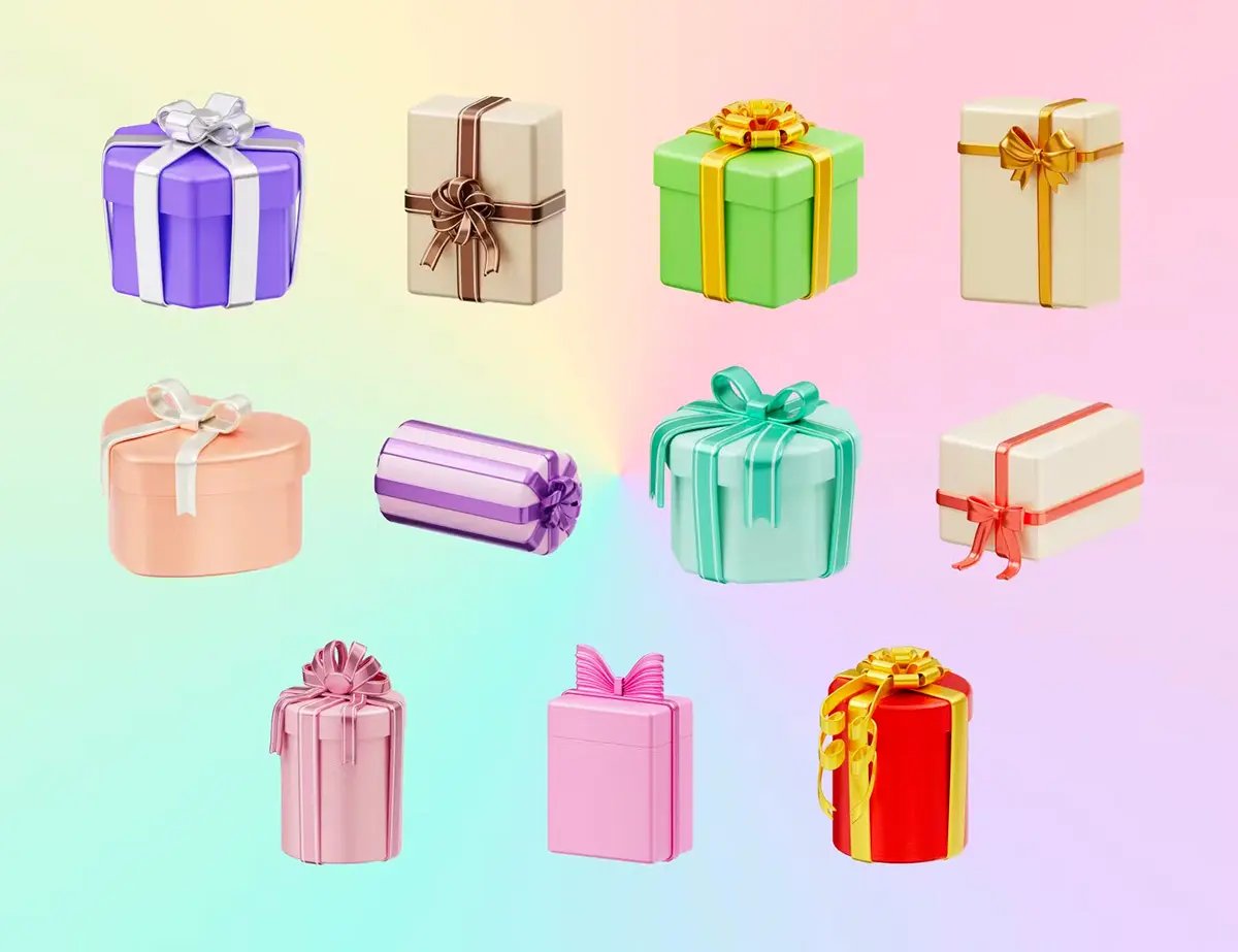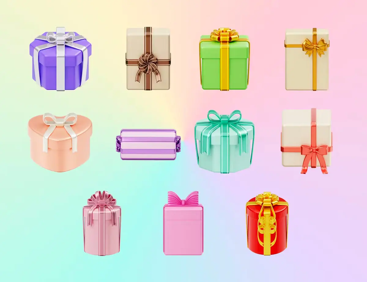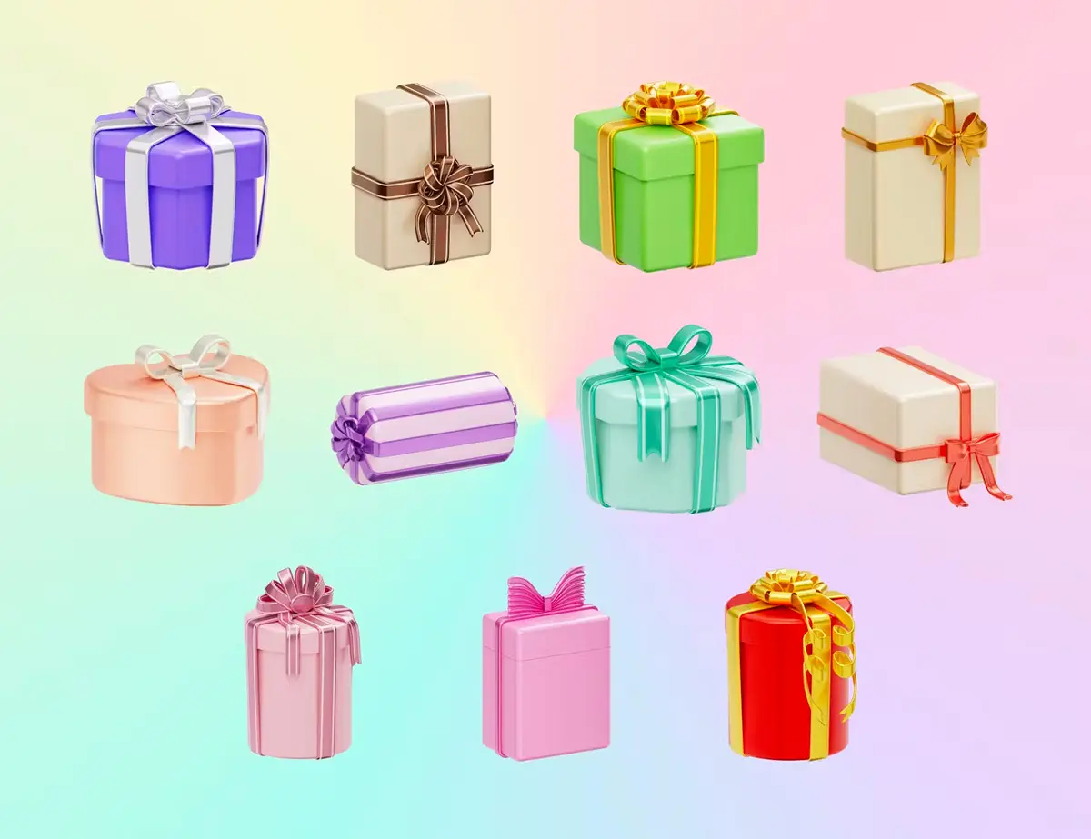 Christmas Gift Box 3D Illustration 3D圣诞节新年节日派对生日礼物礼品盒子插图插画webp免抠图片素材