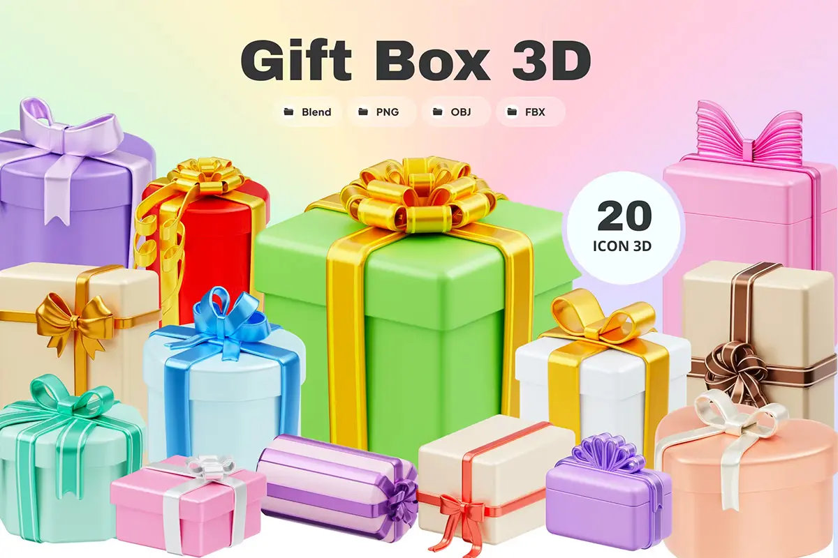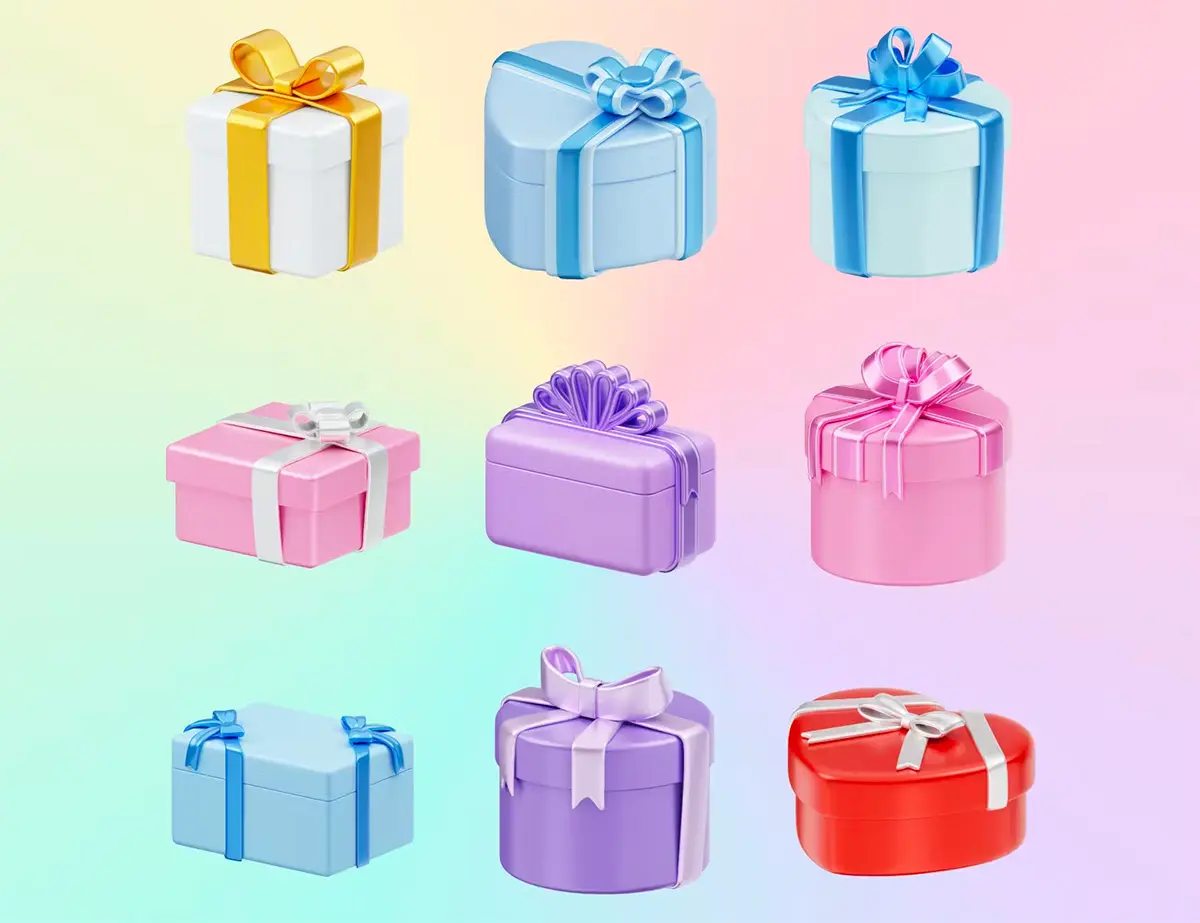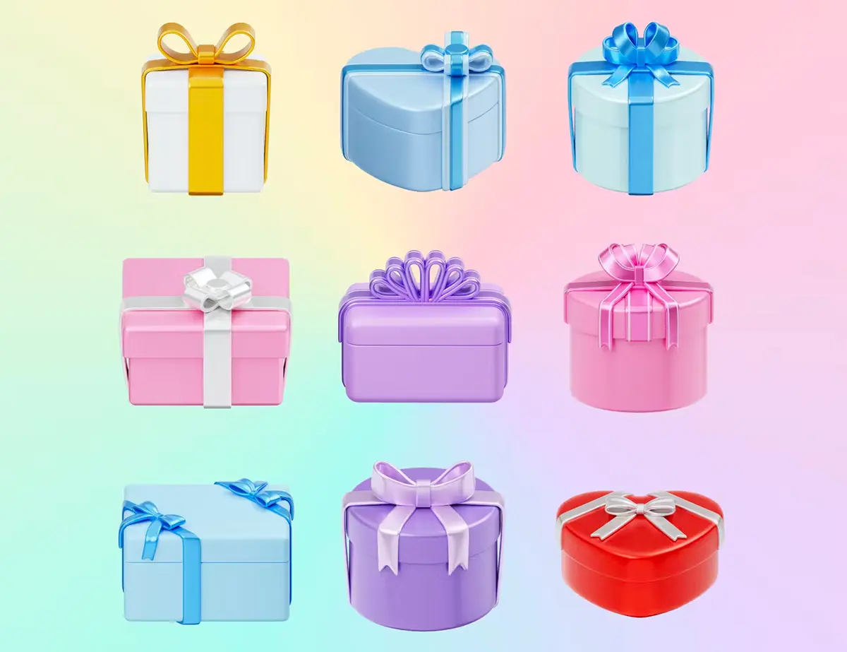 Christmas Gift Box 3D Illustration 3D圣诞节新年节日派对生日礼物礼品盒子插图插画webp免抠图片素材