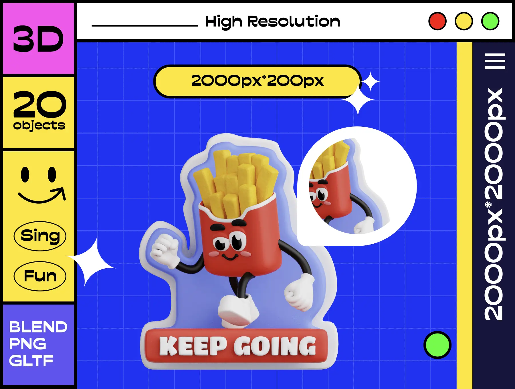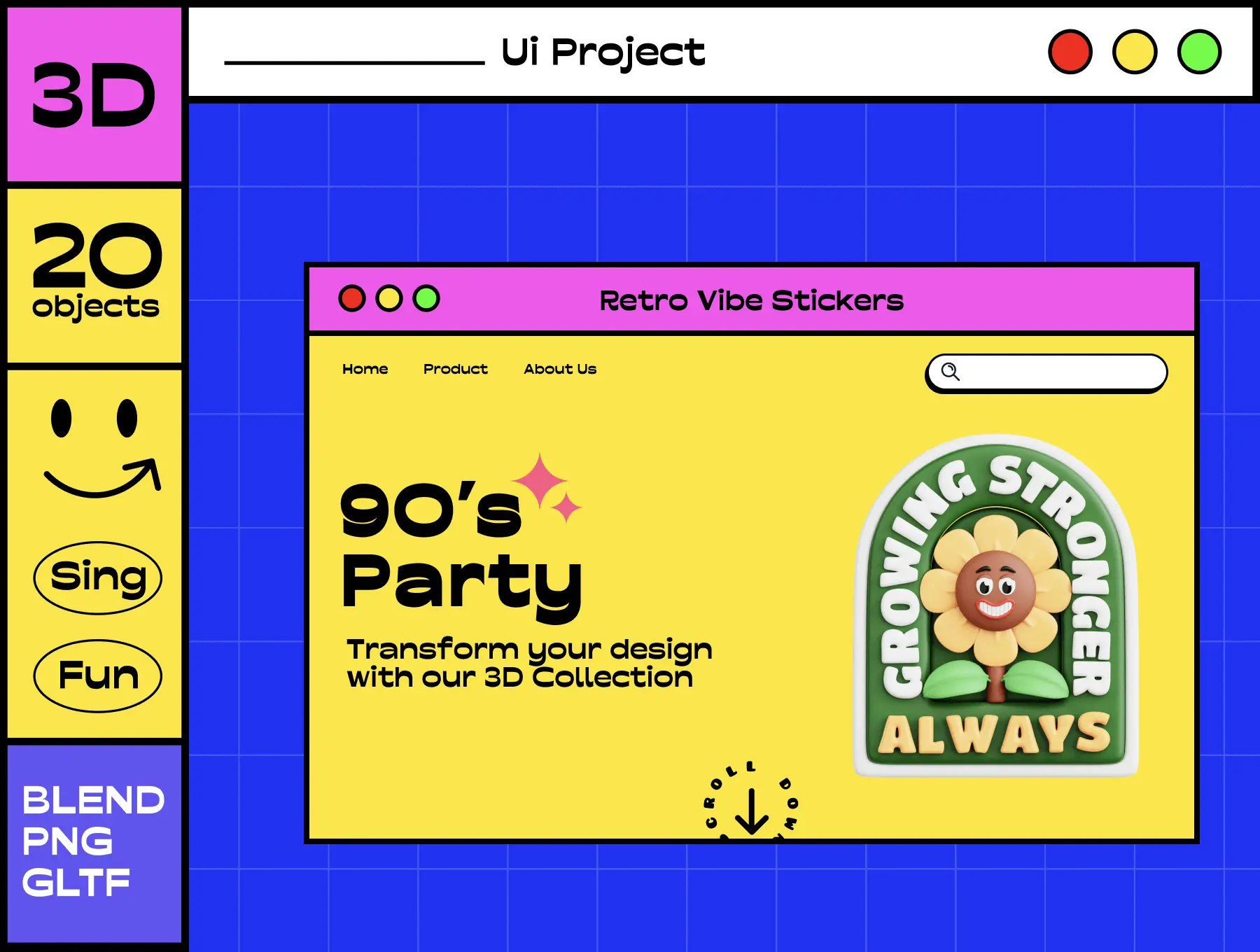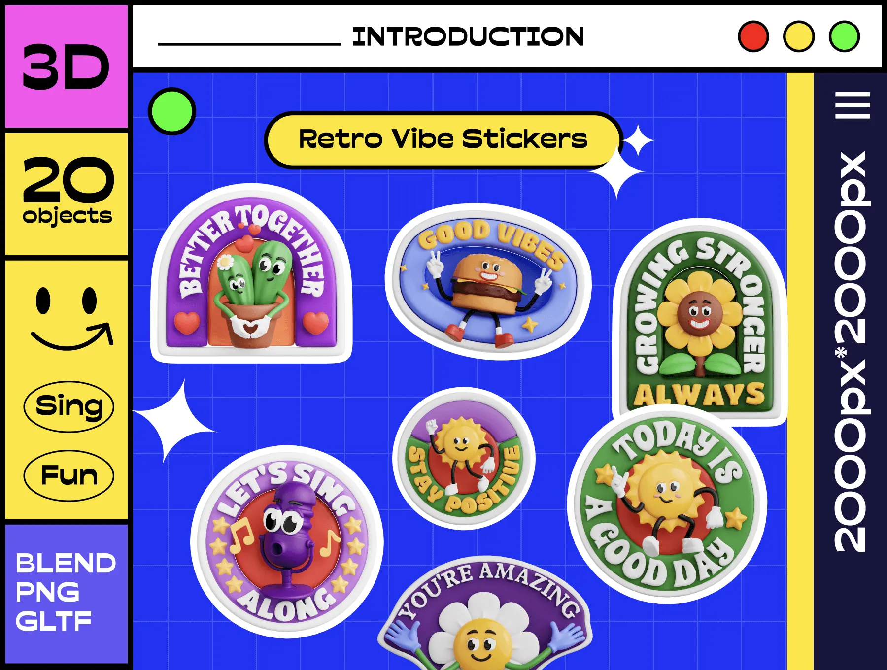 Retro Vibe Stickers 3D Icon Set 20款3D复古趣味卡通形象玩偶公仔立体贴纸插画webp免抠图片素材