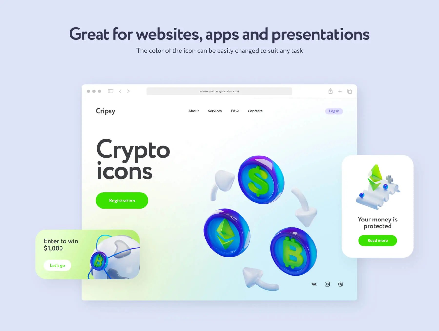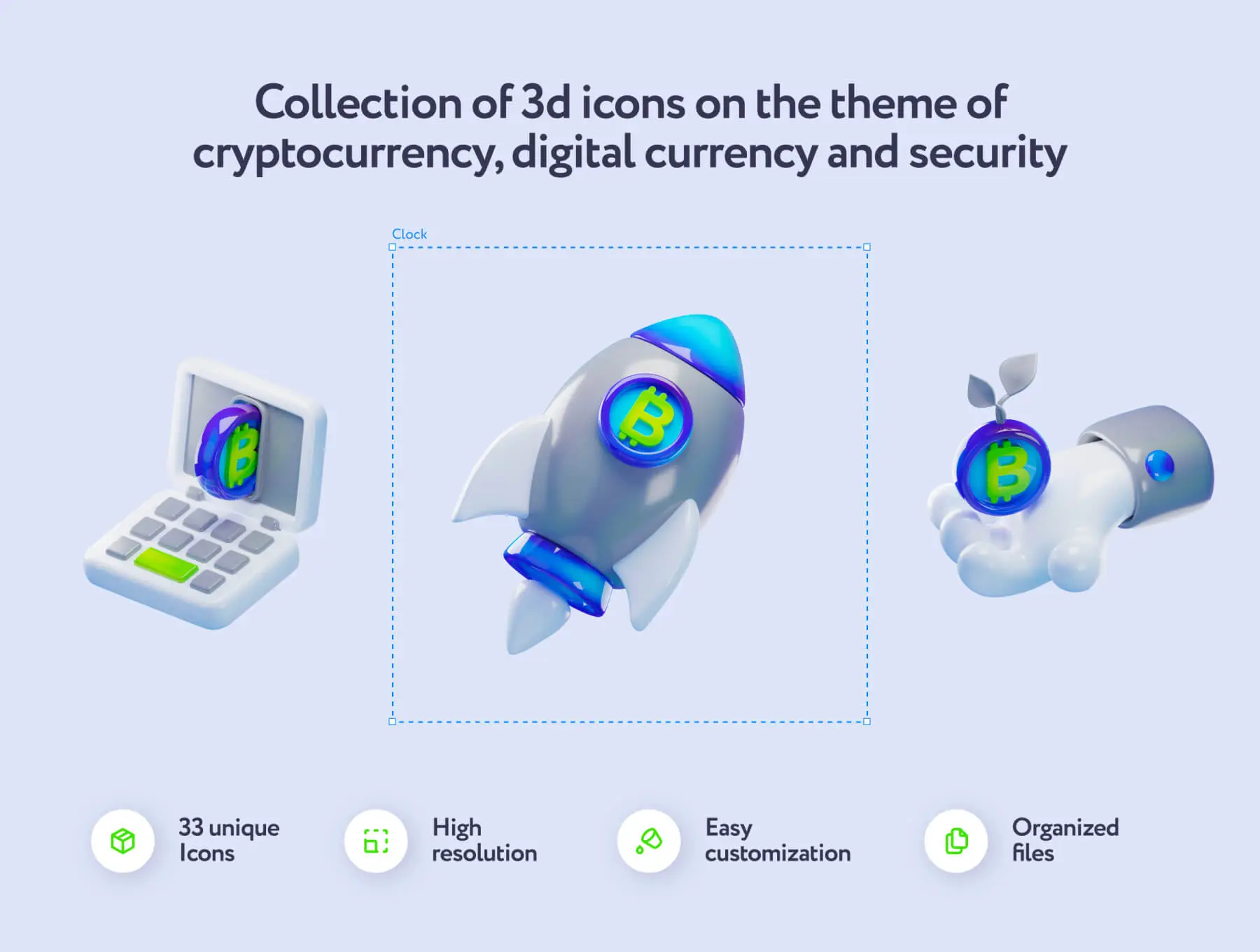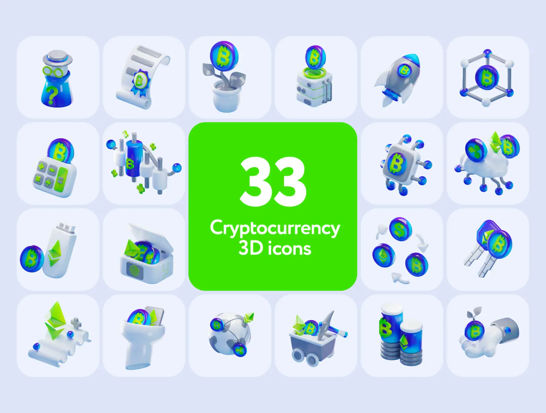 Cripsy Cryptocurrency 3D Icons 33款3D互联网数字金融安全加密货币插图插画图标webp免抠图片素材
