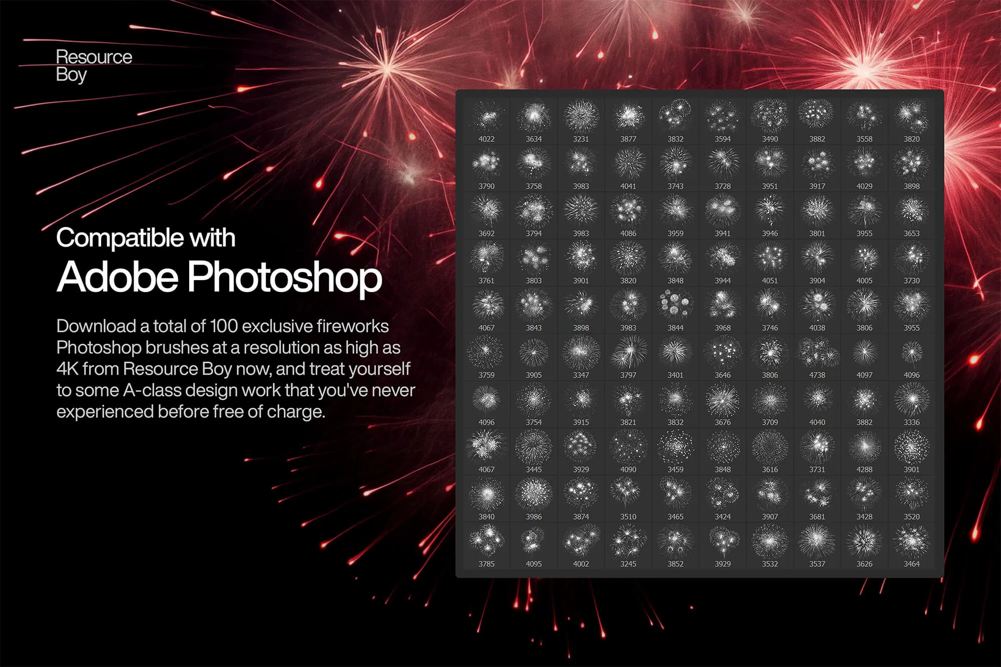 100+ Fireworks Photoshop Brushes  100多款真实4K高清璀璨节日庆典烟火烟花焰火绽放特效滤镜ps笔刷素材