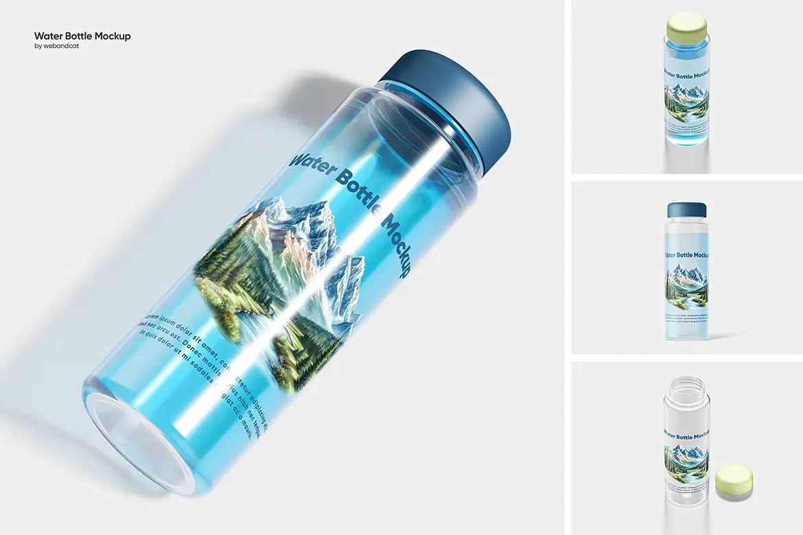 Plastic Water Bottle Mockup 塑料透明纯净水饮料包装样机展示素材