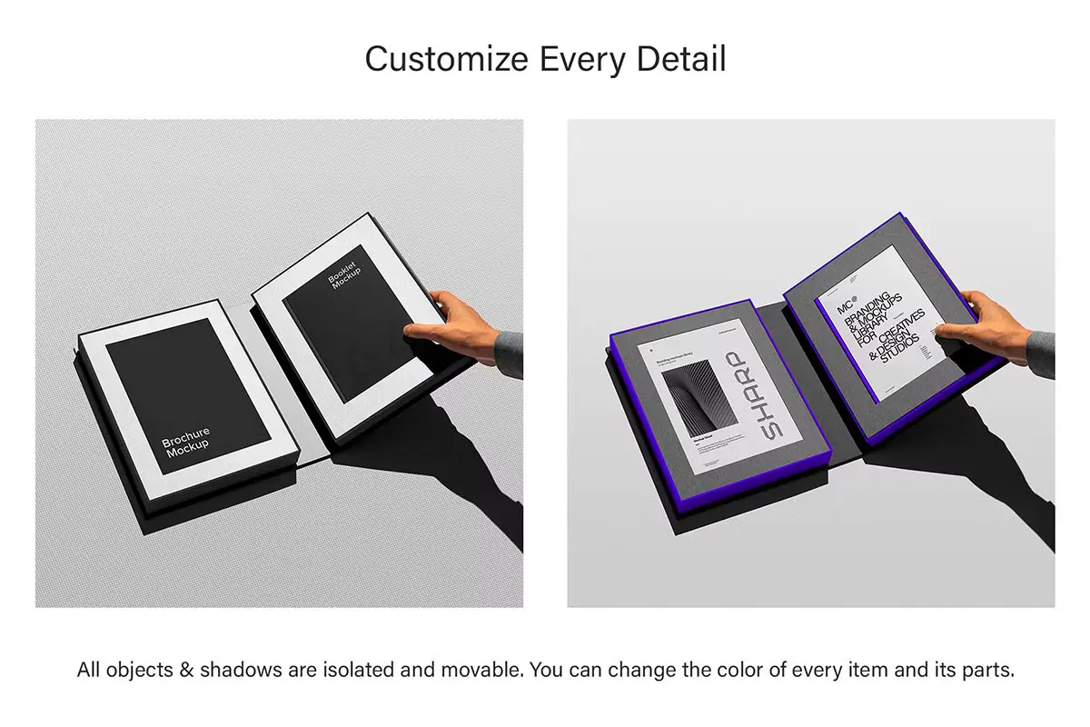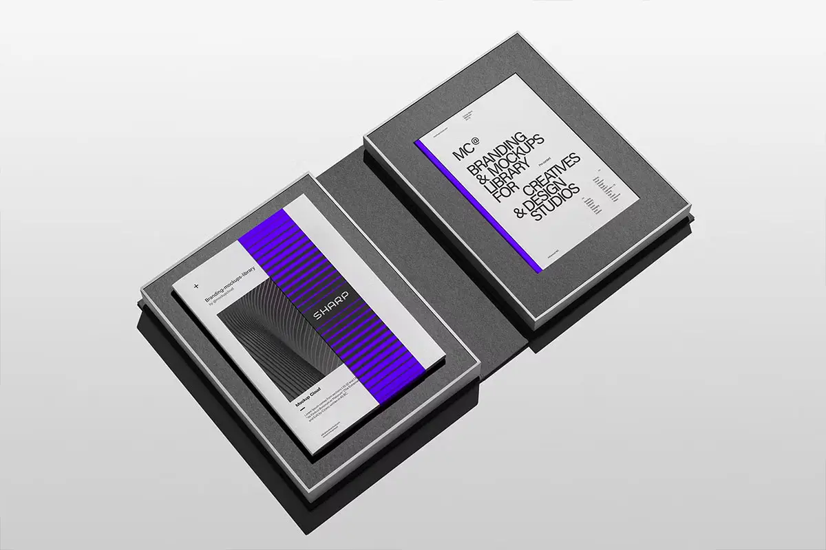 Branding Packaging Mockups 精装硬面书本翻盖折叠包装盒模型品牌展示设计贴图ps样机素材