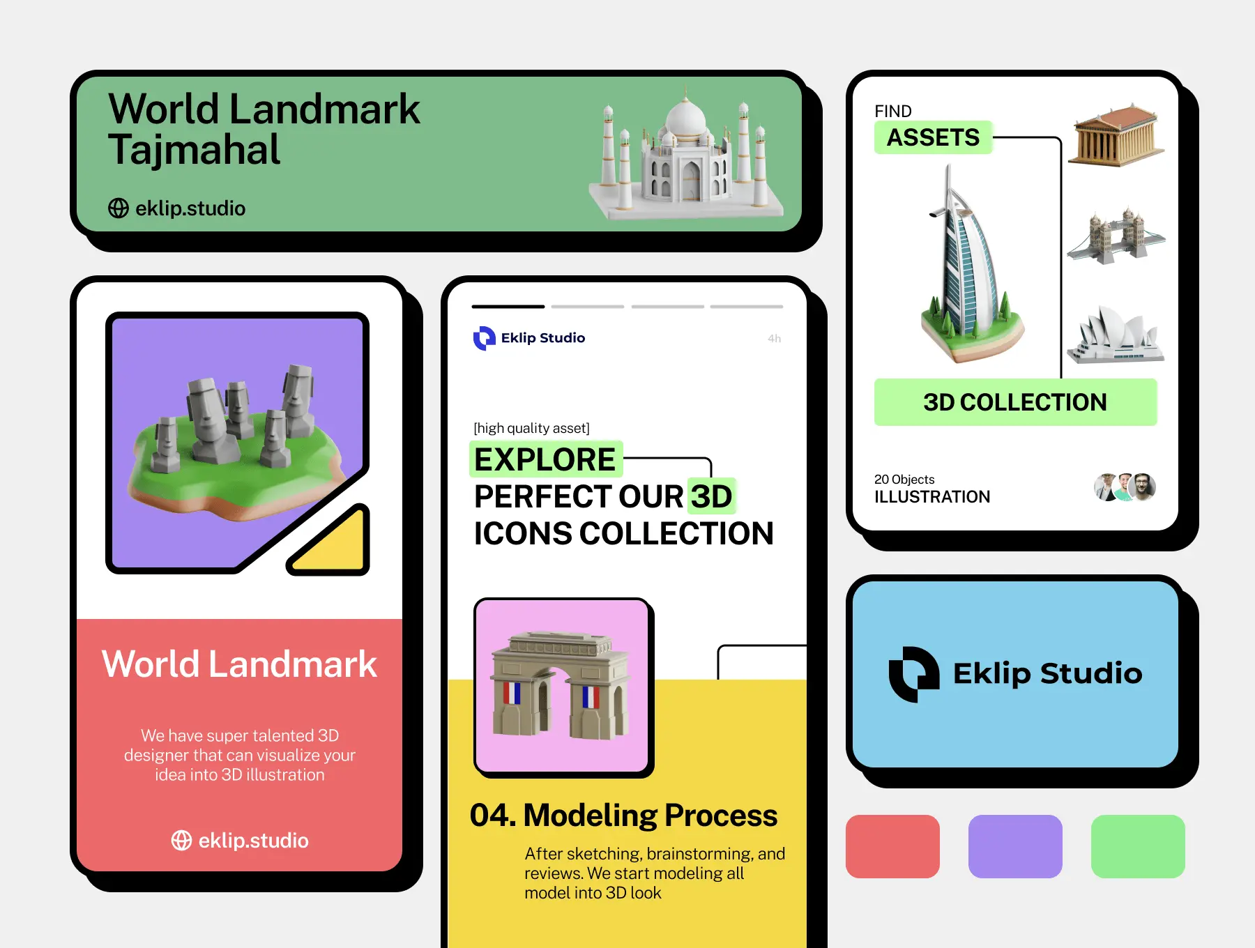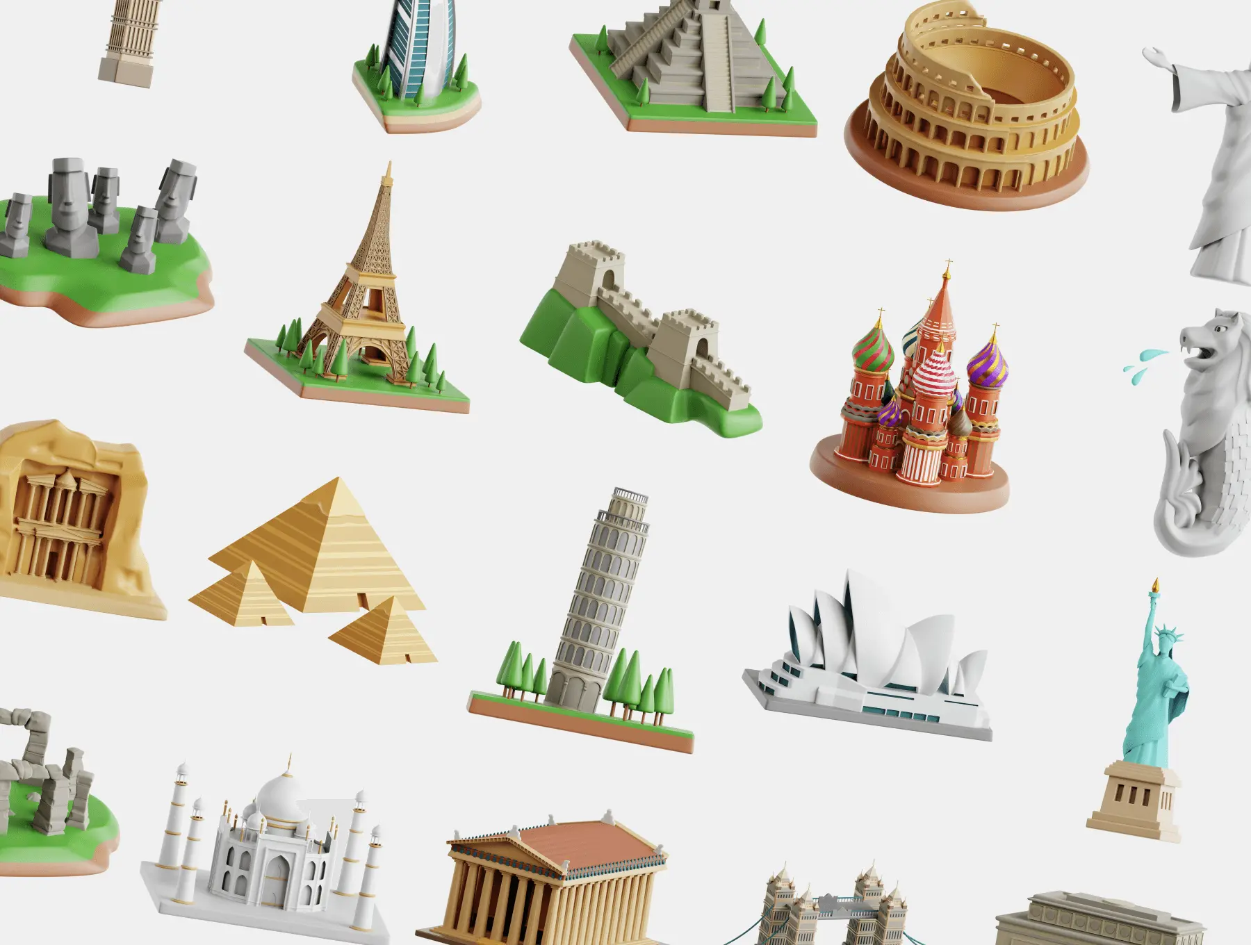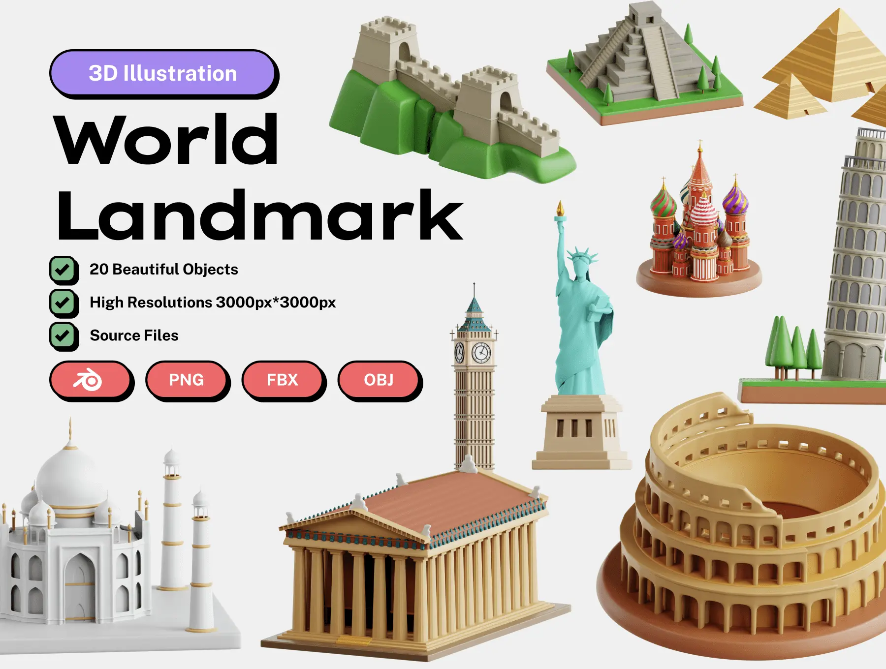 World Landmark 3D Icon Set 20款世界地标3D图标集插图插画webp免抠图片素材