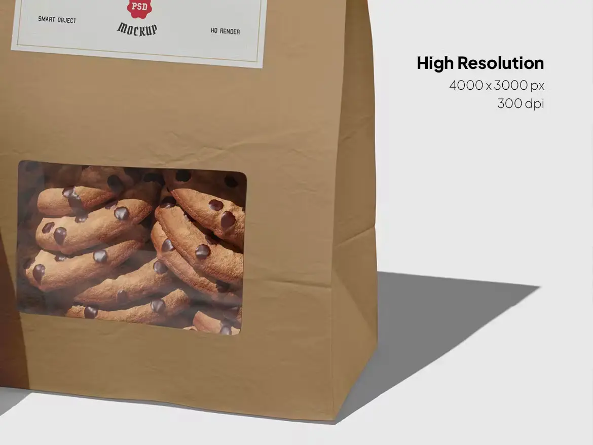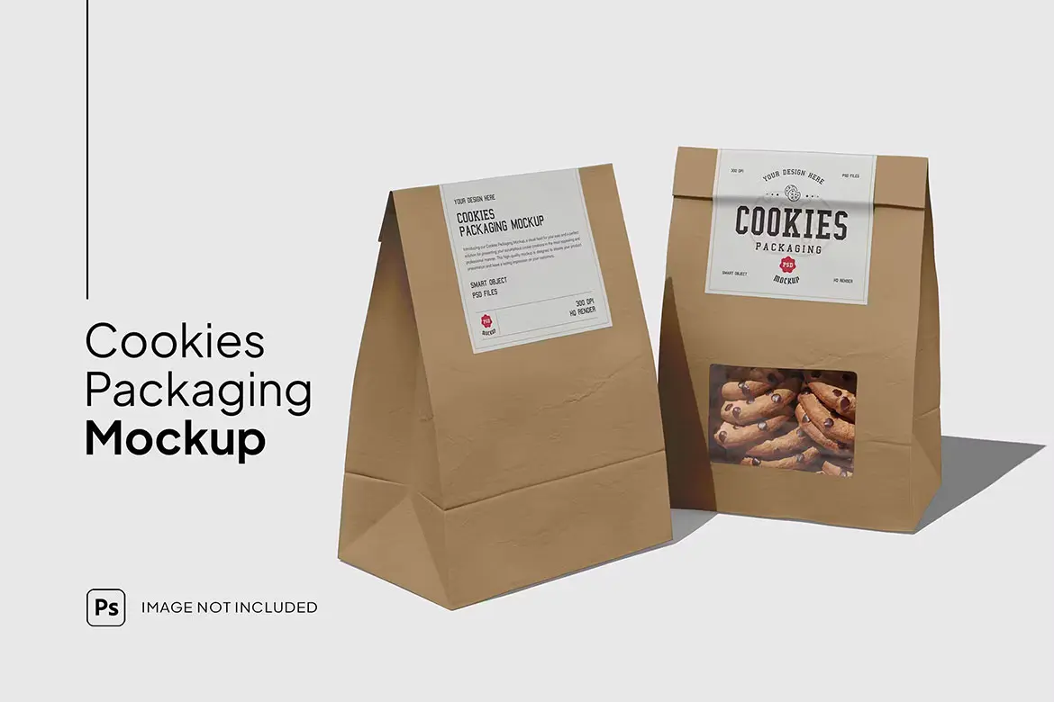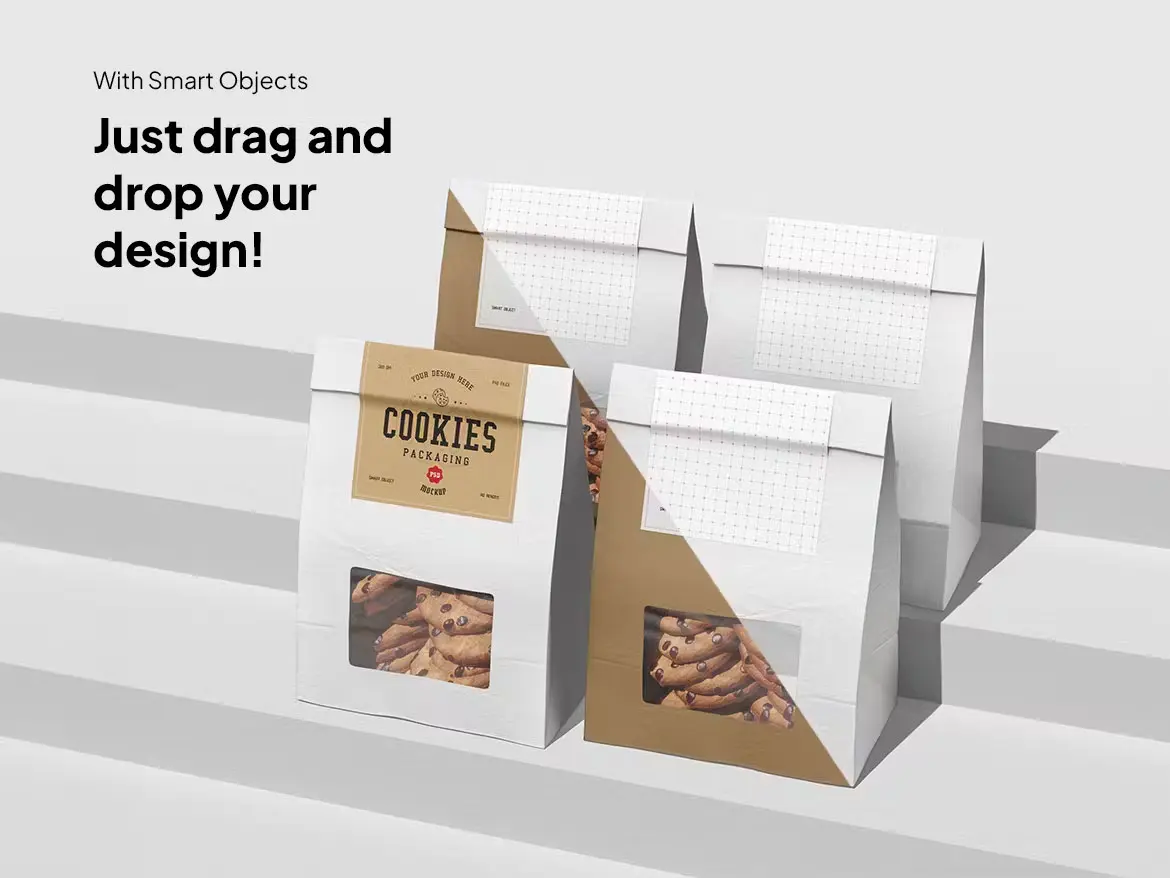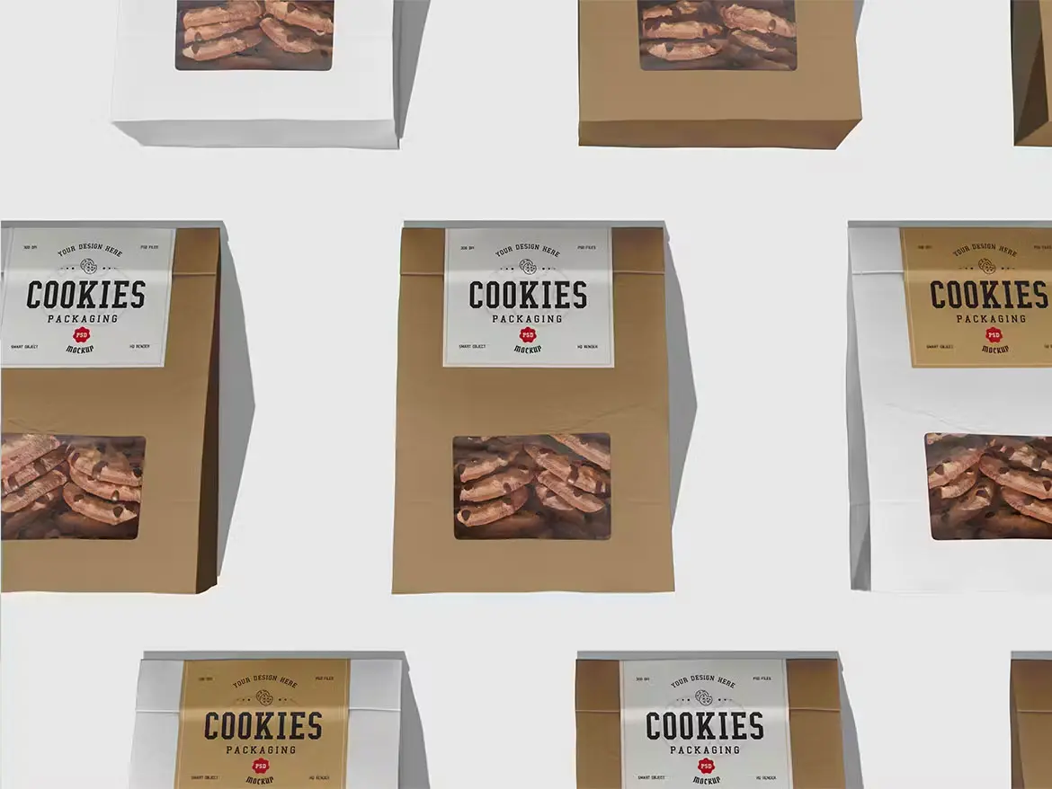Paper Bag Mockup 食品包装牛皮纸打包袋模型展示袋身标签贴纸设计贴图ps样机素材