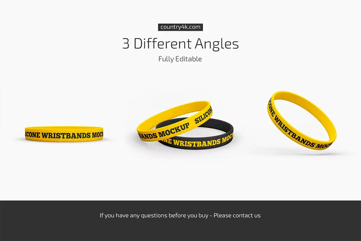 Silicone Wristbands Mockup Set 硅胶橡皮腕带模型品牌logo标识设计贴图ps样机素材