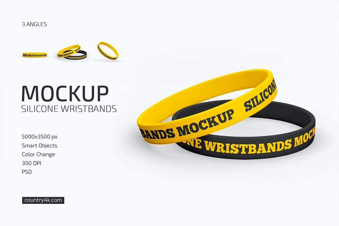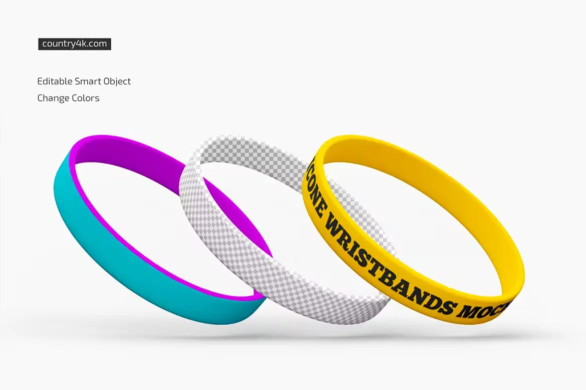 Silicone Wristbands Mockup Set 硅胶橡皮腕带模型品牌logo标识设计贴图ps样机素材
