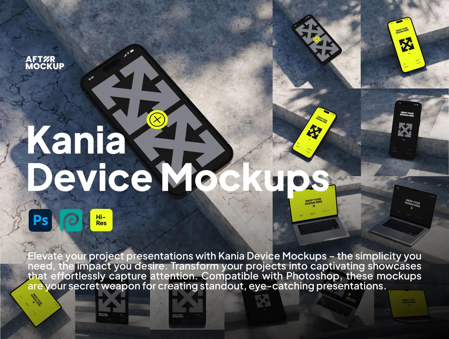 Kania Device Mockups 12款水泥工业风iPhone手机iPad平板Macbook笔记本电脑ps样机素材