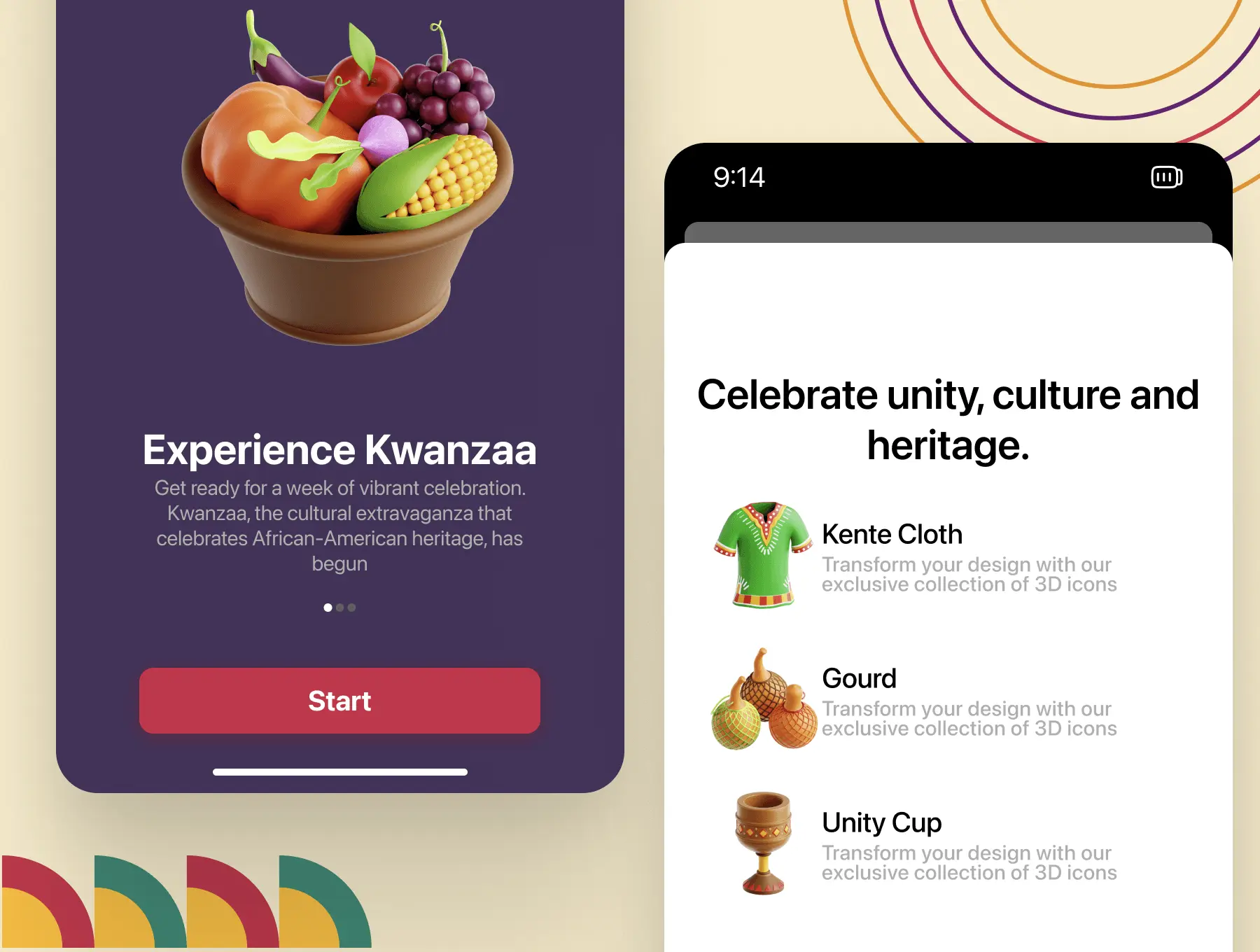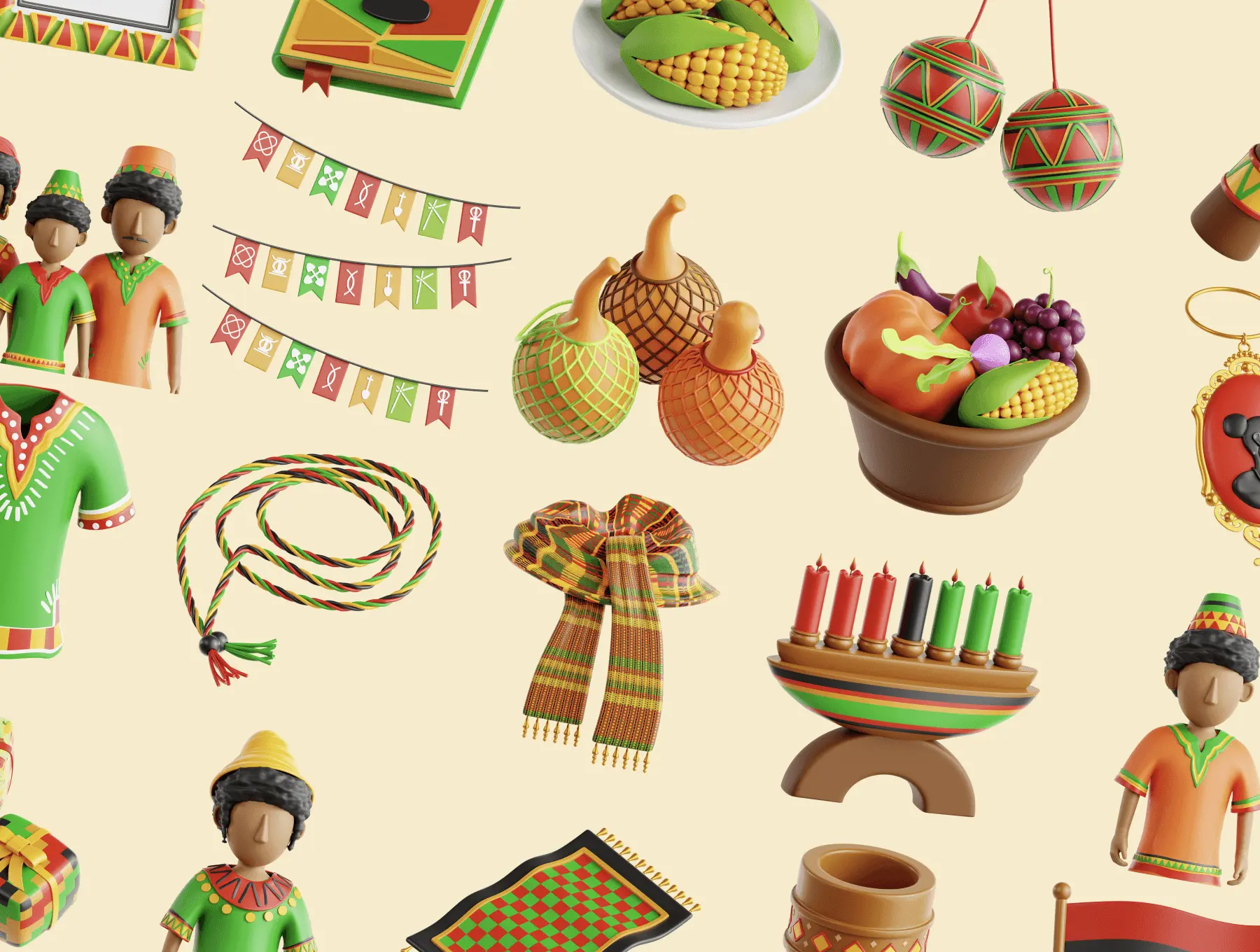 Kwanzaa 3D Icon Set 20款非洲宽扎节果实初收节庆祝活动装饰元素3D图标icon素材webp免抠图设计