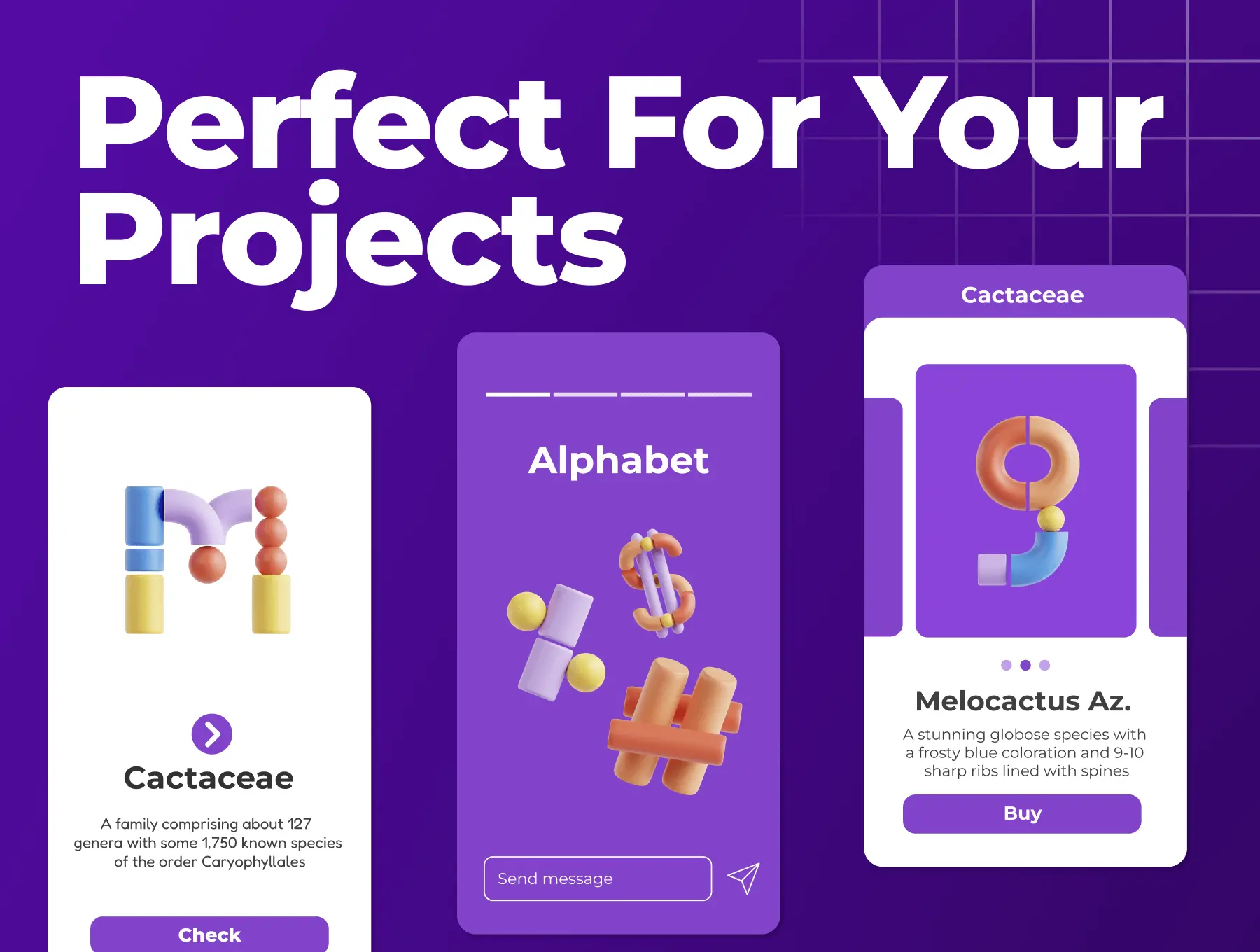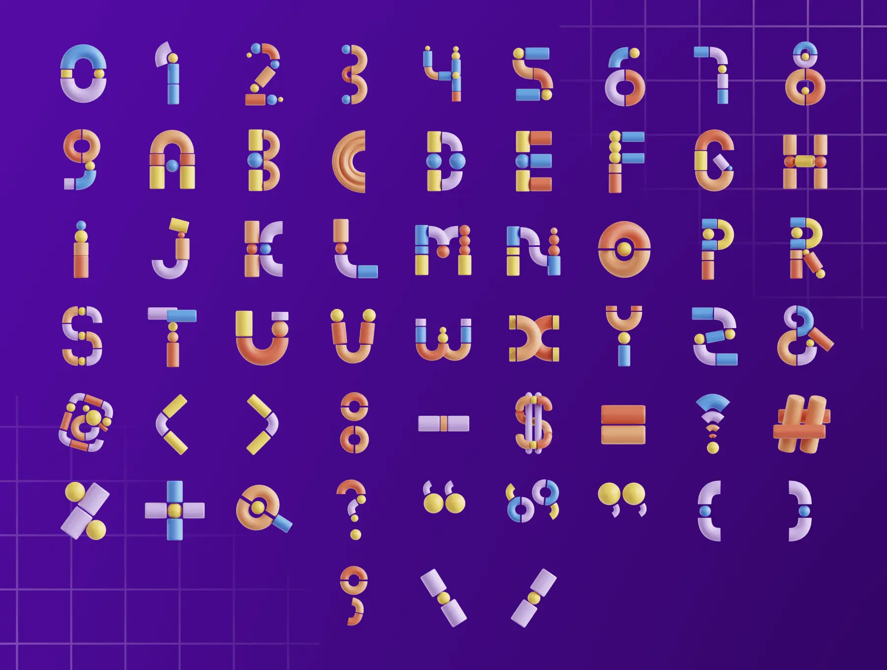 Geometric Alphabet 3D Icon Set 57款3D立体趣味卡通英文字母数字符号几何积木插图webp免抠图片素材