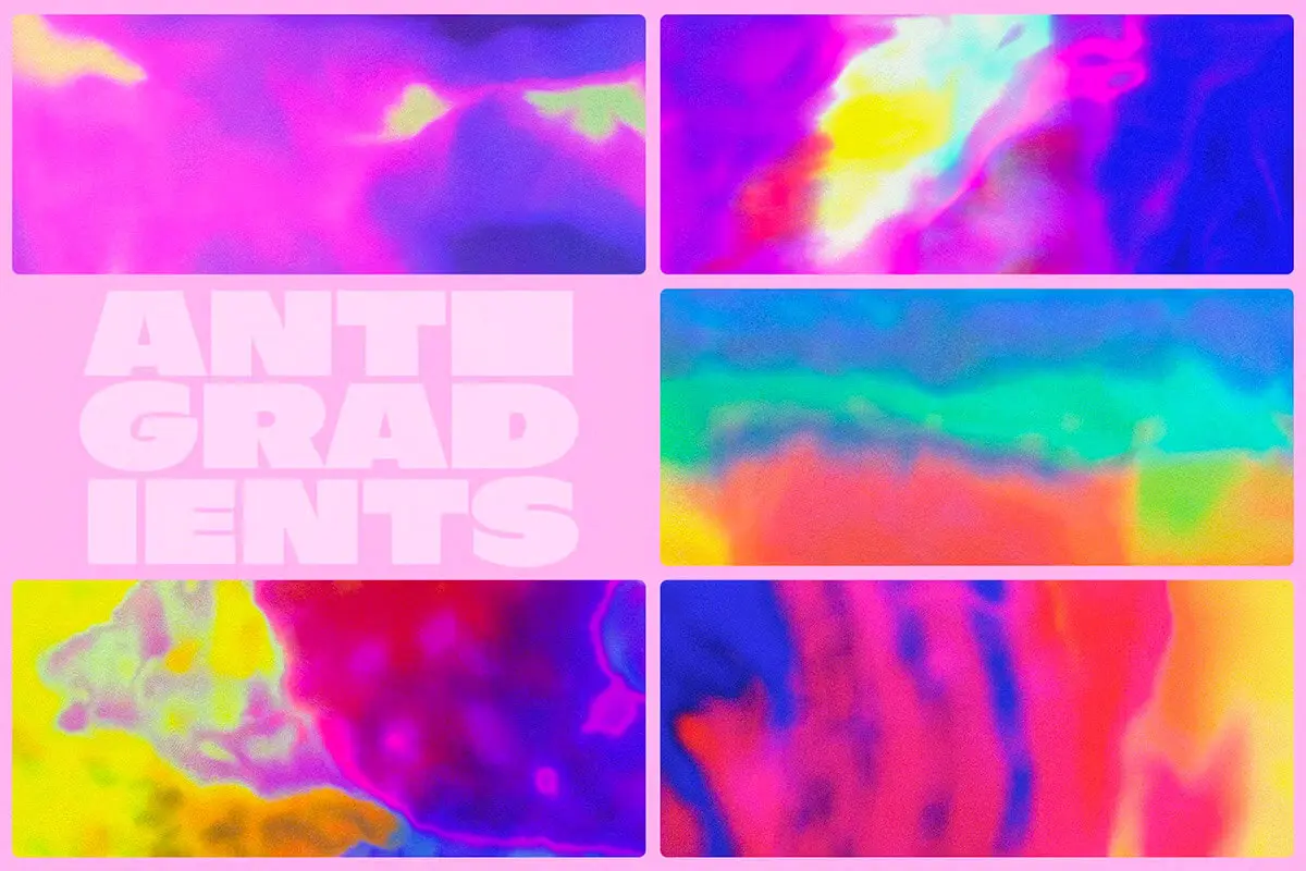 Antigradients 15款复古颗粒噪点酸性迷幻渐变艺术科幻抽象科技海报背景图片素材