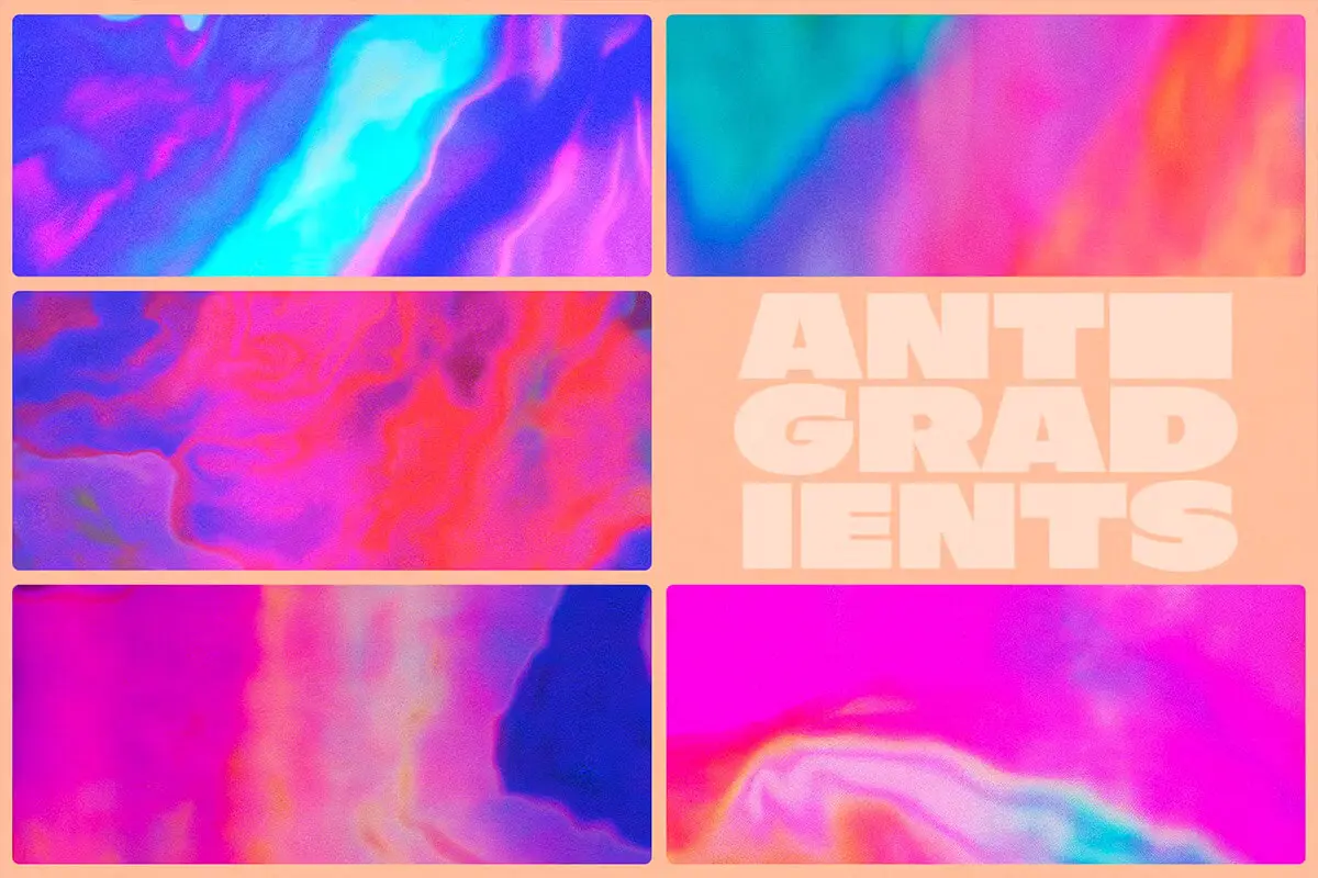 Antigradients 15款复古颗粒噪点酸性迷幻渐变艺术科幻抽象科技海报背景图片素材
