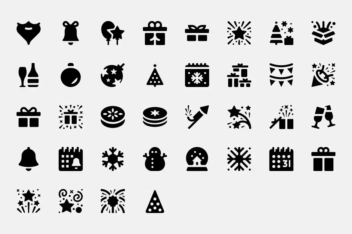 New Year Icons 36款圣诞节新年庆典节日派对主题元素面性图标矢量icon素材SVG