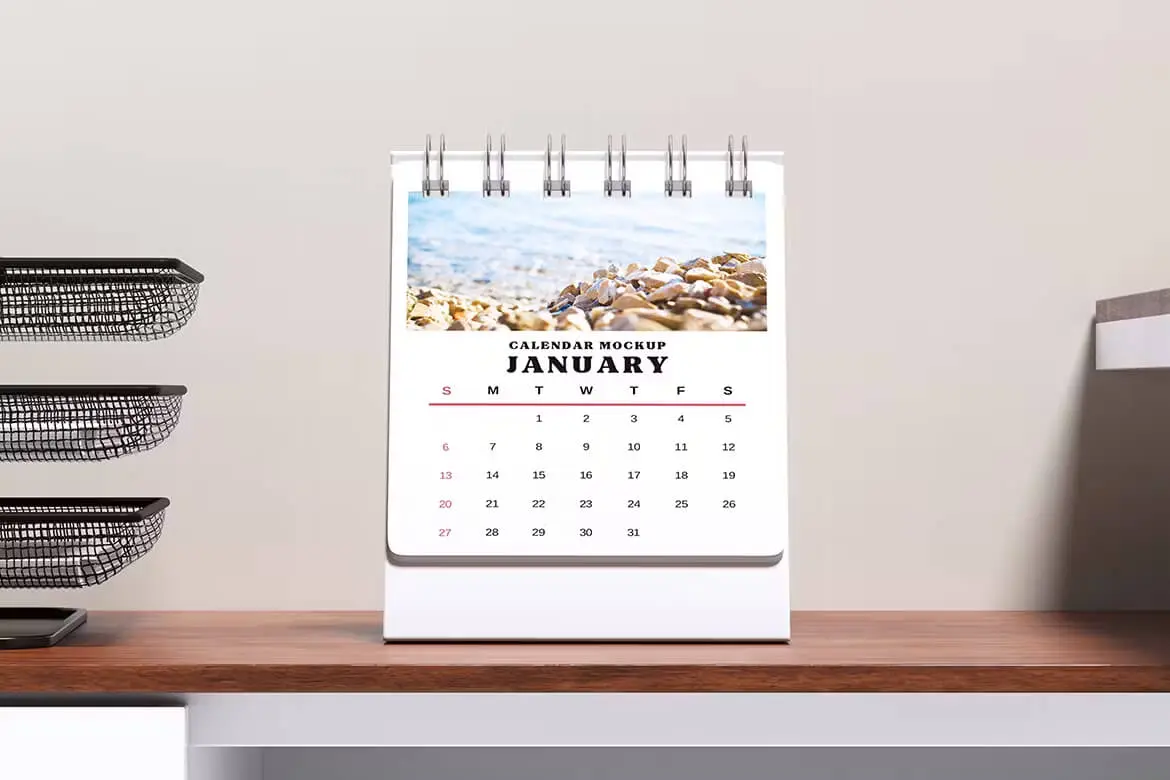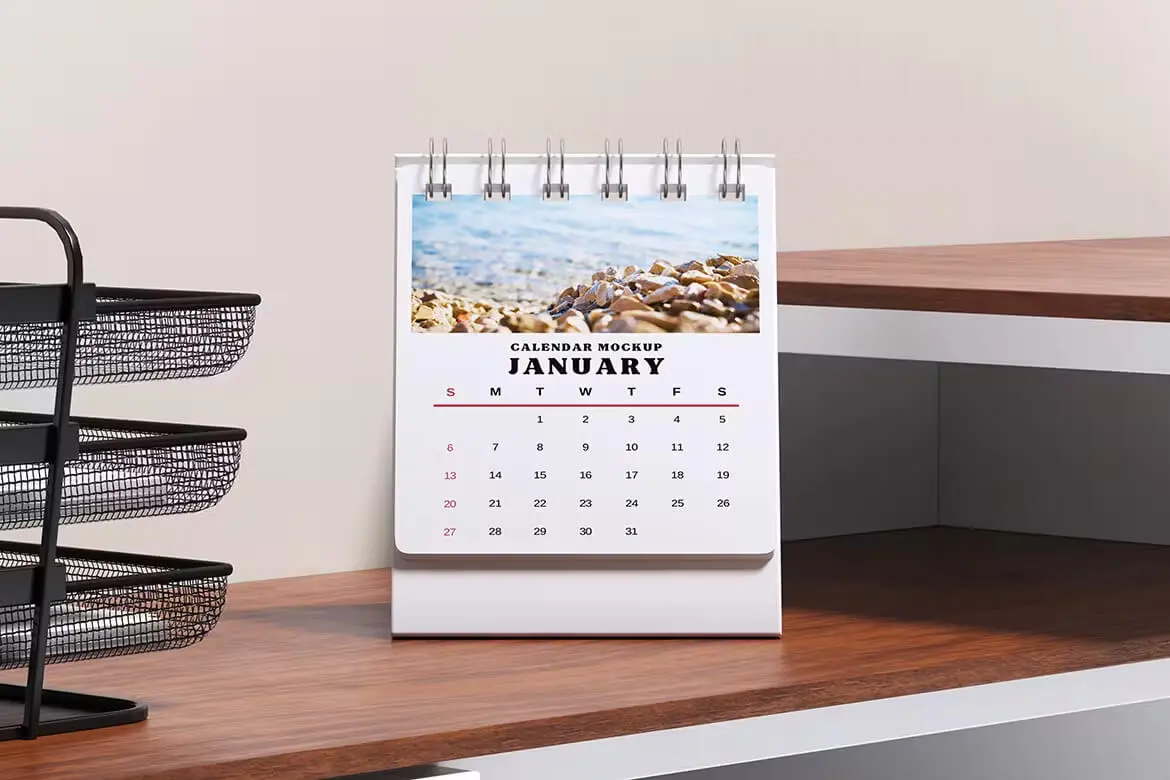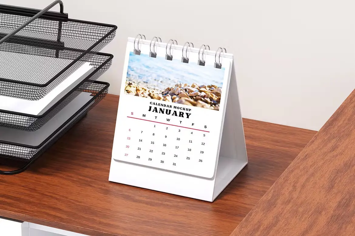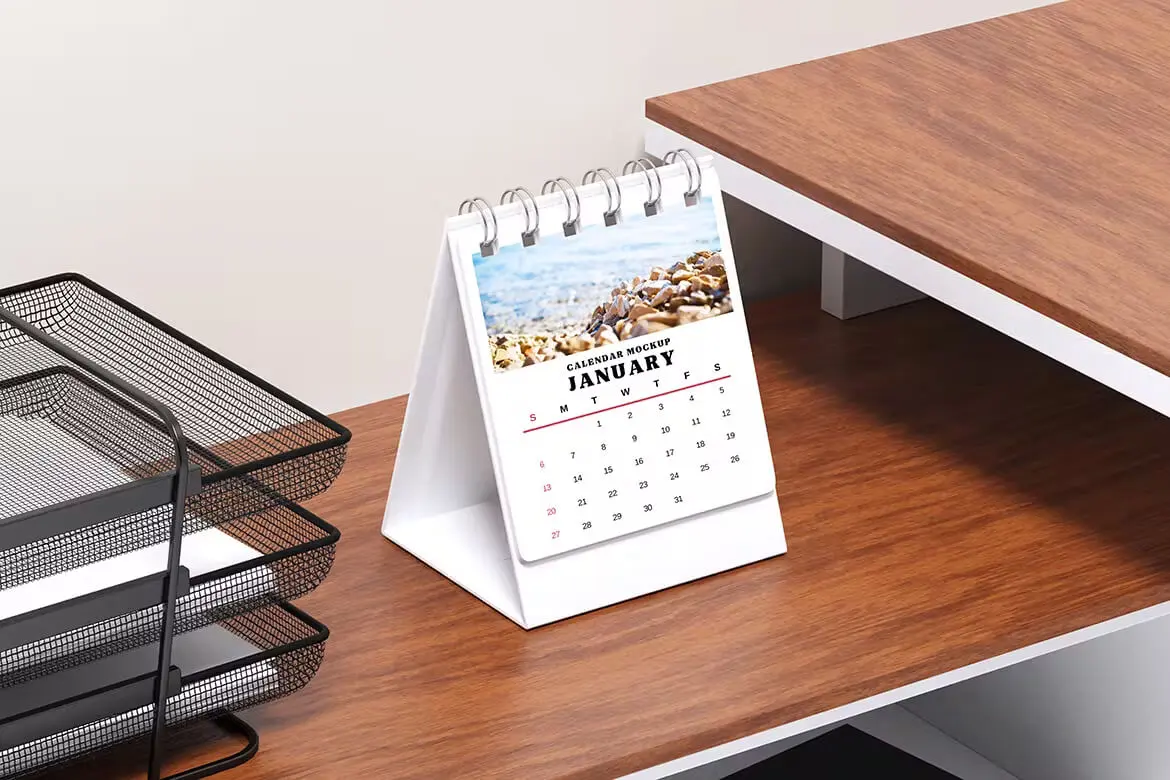 Calendar Mockup 办公桌上的日历月历台历模型展示设计贴图ps样机素材