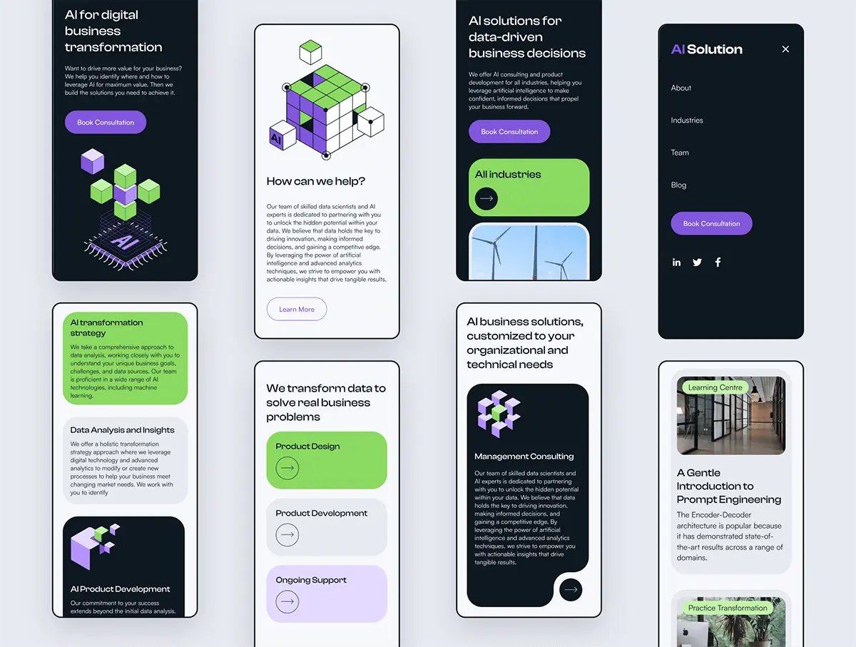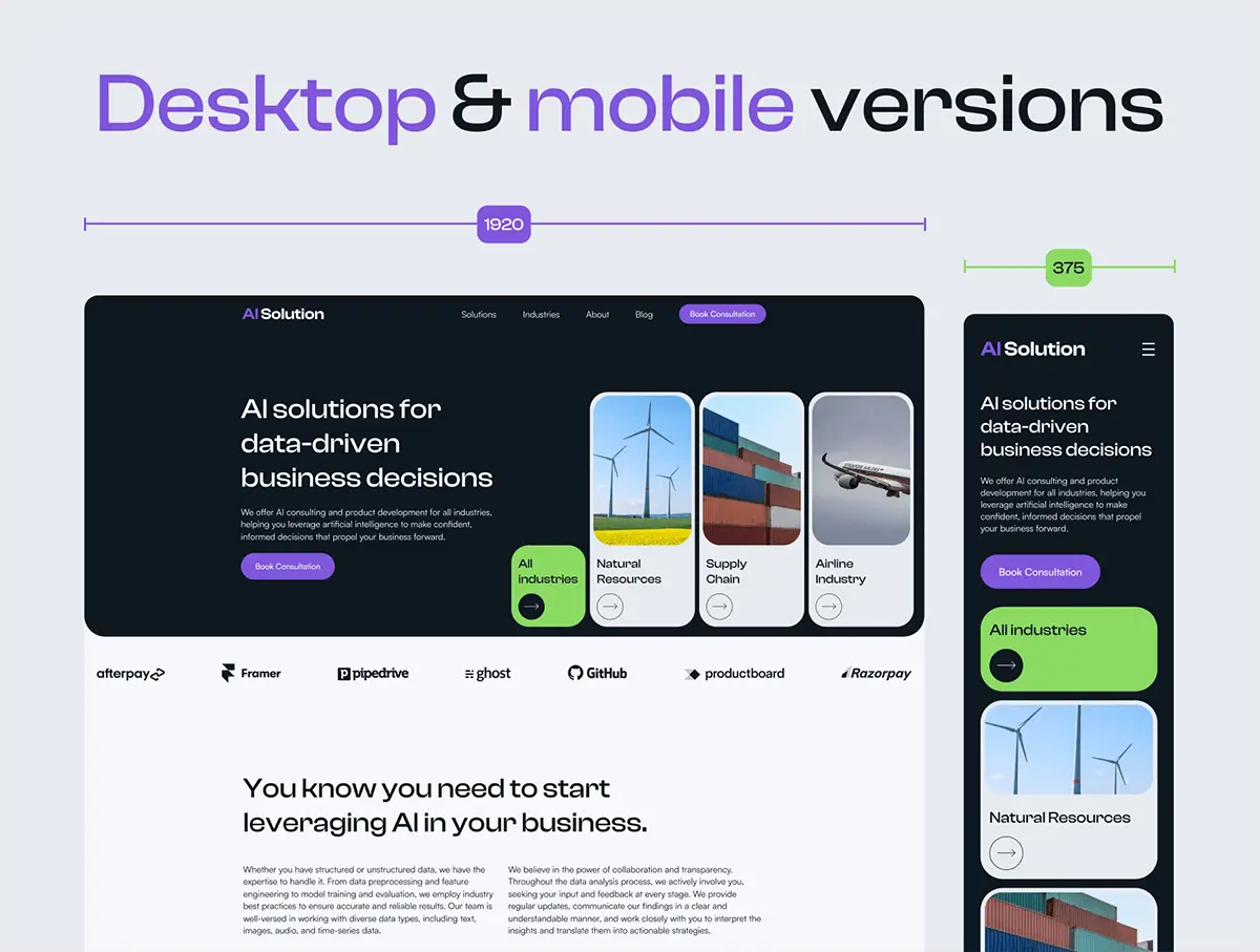 Ai Agency Web UI Kit 时尚科技公司AI人工智能网站移动端网页ui界面设计figma组件模板