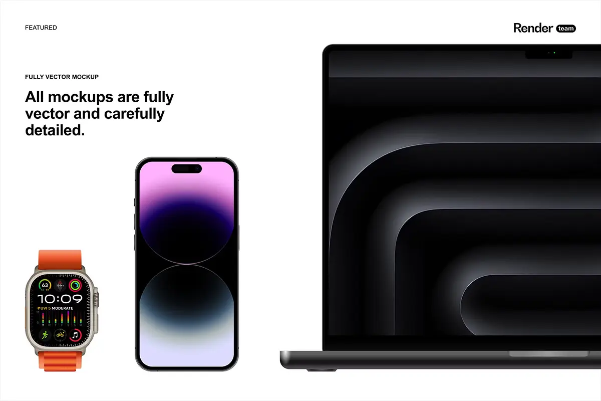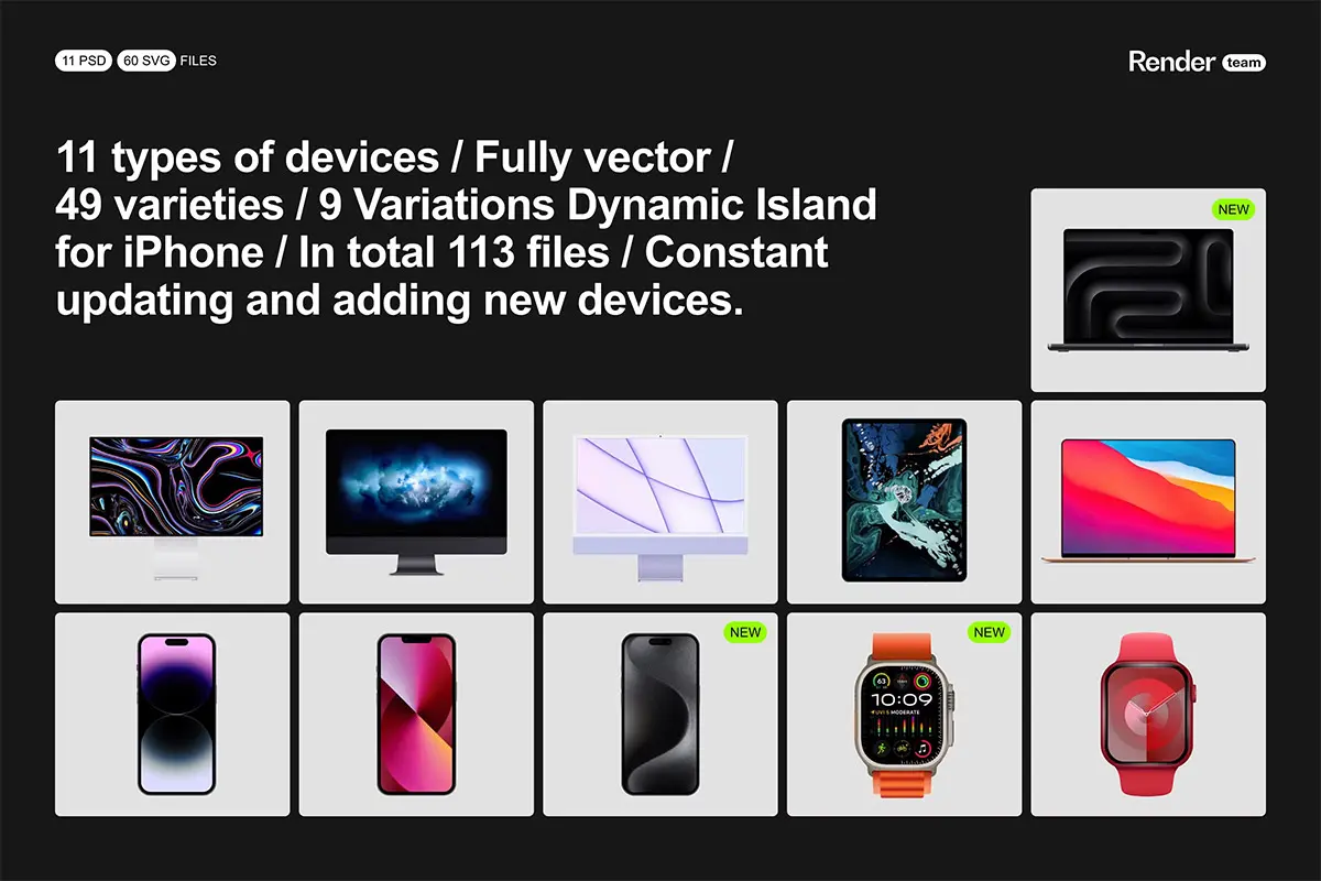 Apple Devices Mockup Bundle 11款iPhone平板iMac笔记本电脑手表显示器数码产品ps样机素材合集