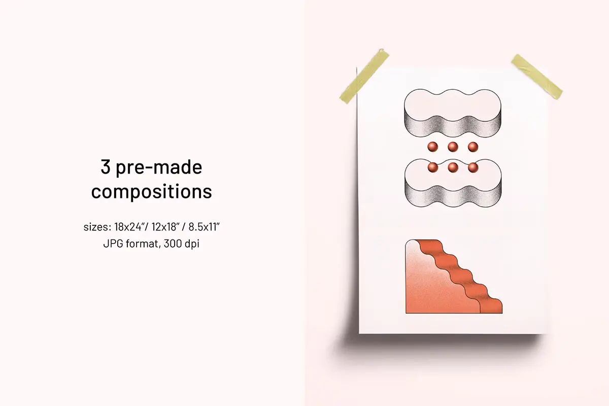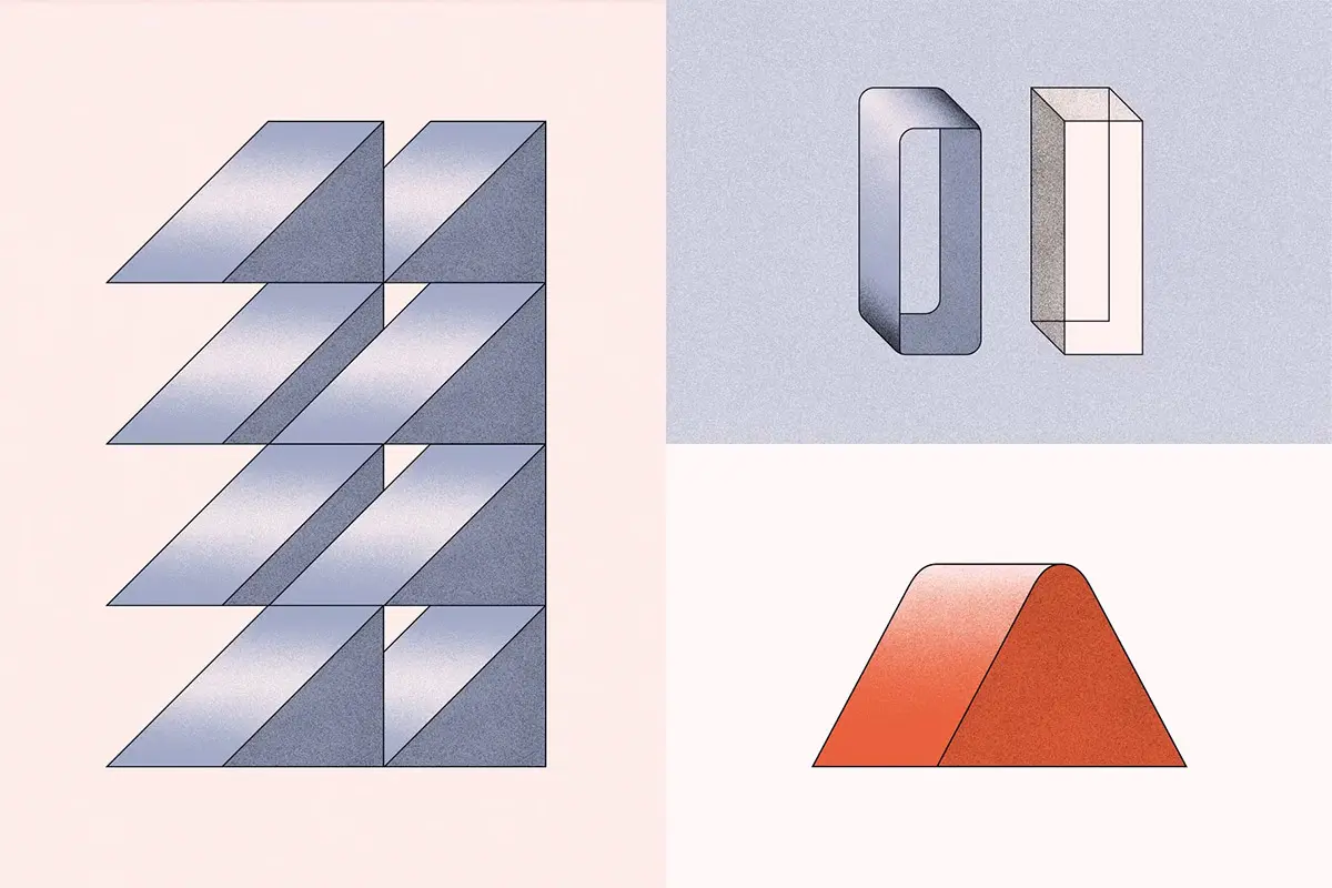 Geometric & Abstract Illustrations 64款复古潮流时尚文创抽象简约颗粒艺术几何图形webp免抠图片素材