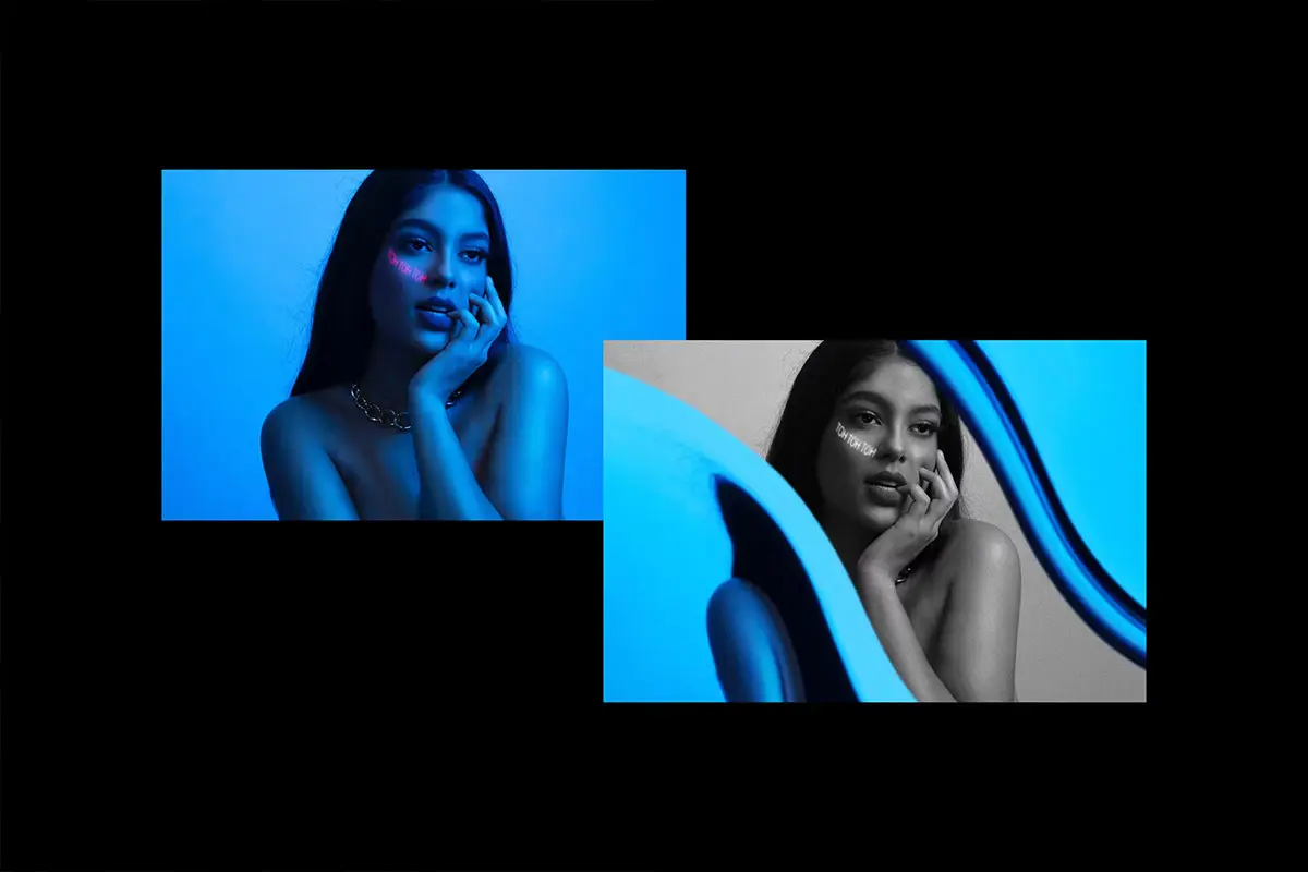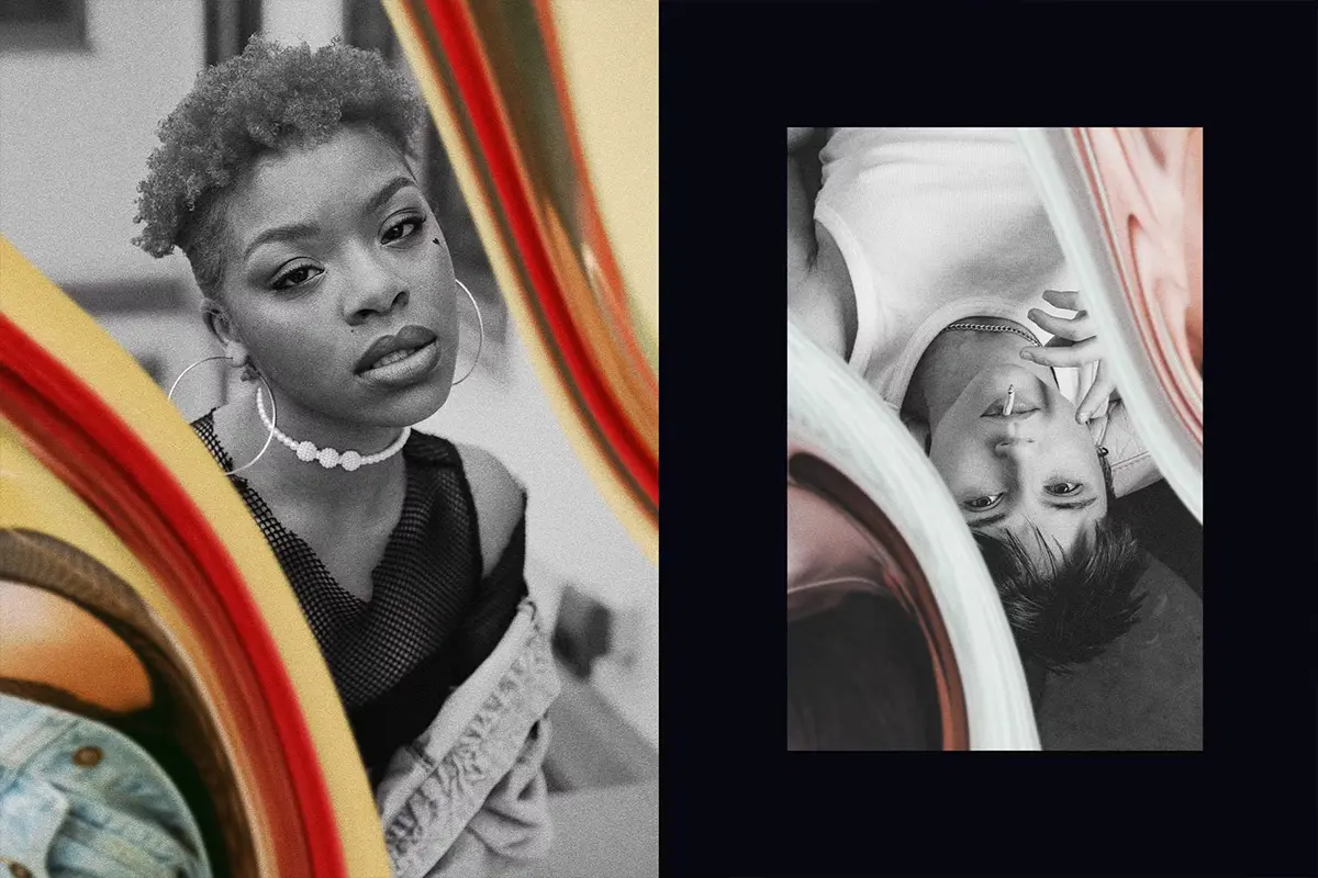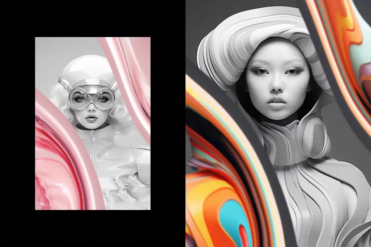 Liquid Smeared Photo Effect 潮流艺术黑白撞色液体迷幻扭曲抽象艺术图像照片特效ps样机模板