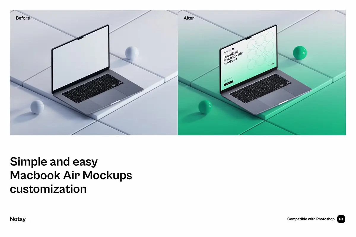 Notsy – Macbook Air Mockups Part.1 10款Macbook笔记本Air电脑ps样机广告ui网页设计作品展示效果图