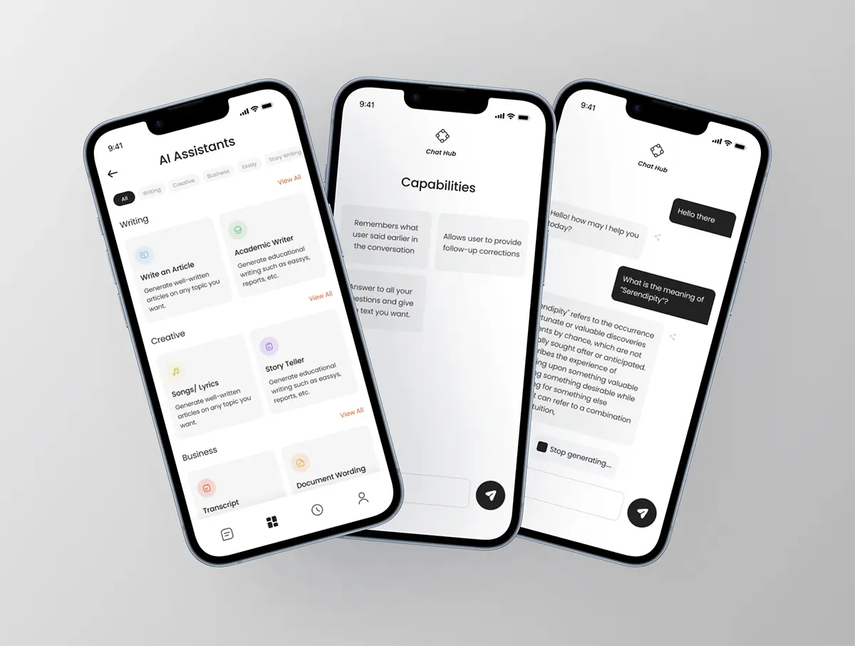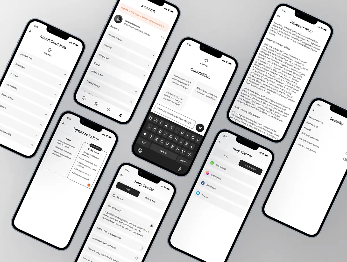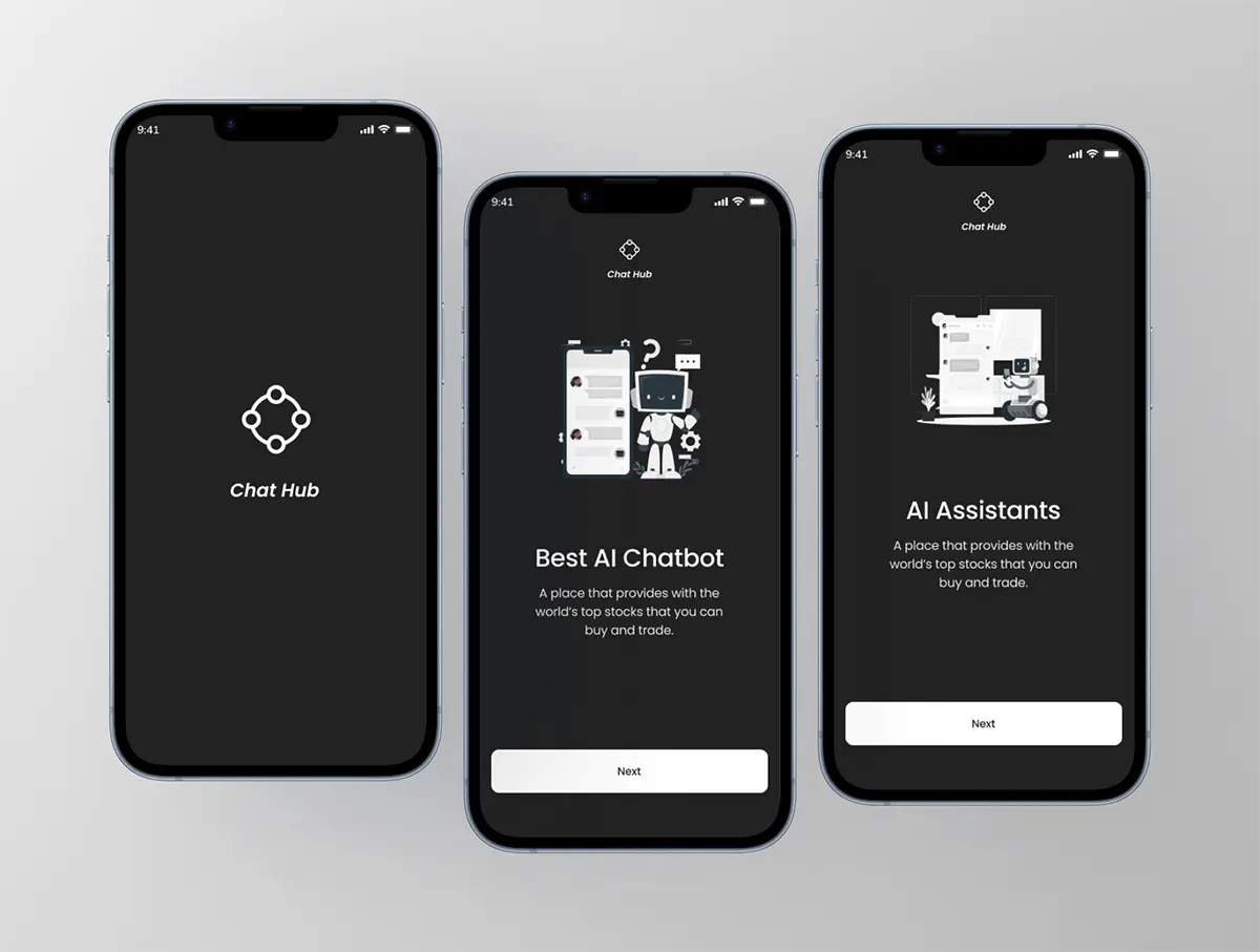 ChatHub – AI Chat Mobile App UI KIT 专业简约AI人工智能交互聊天机器人社交App应用ui界面fig套件模板