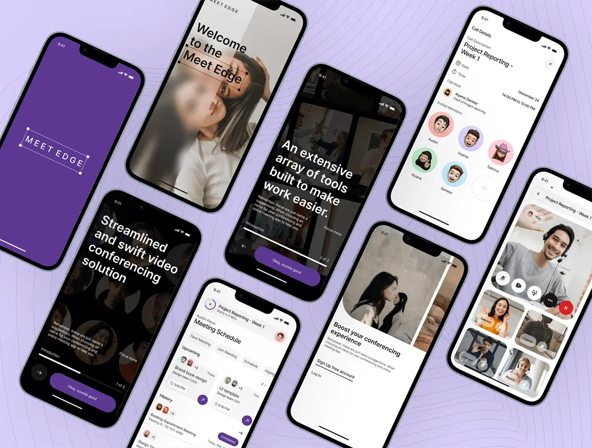 Meet Edge – Online Meeting App UI Kit 100多屏国外在线视频会议聊天通讯iOS/Android用户界面app设计ui套件模板