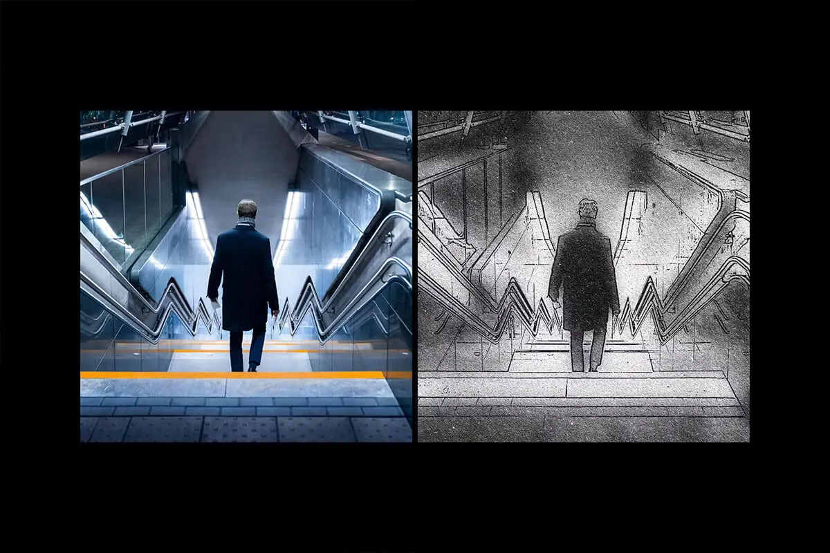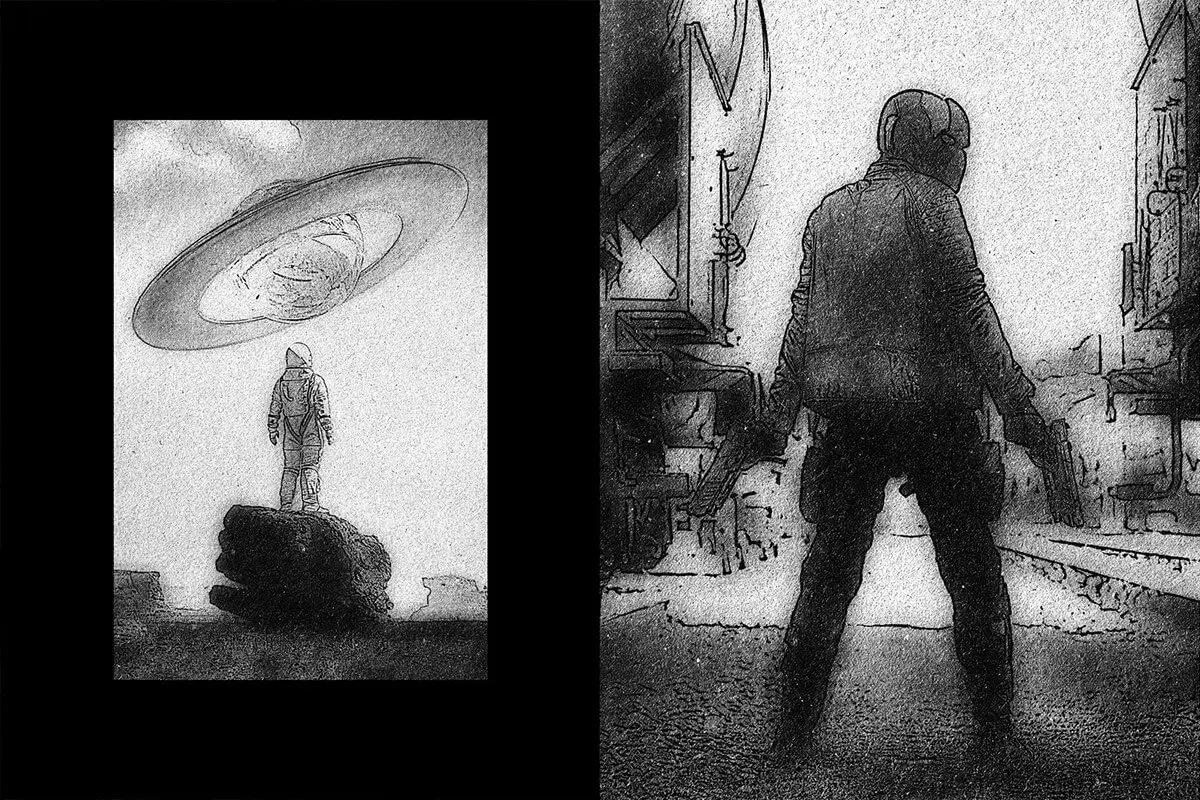 Noir Sketch Photo Effect 黑色素描照片海报漫画ps特效样机素材模板