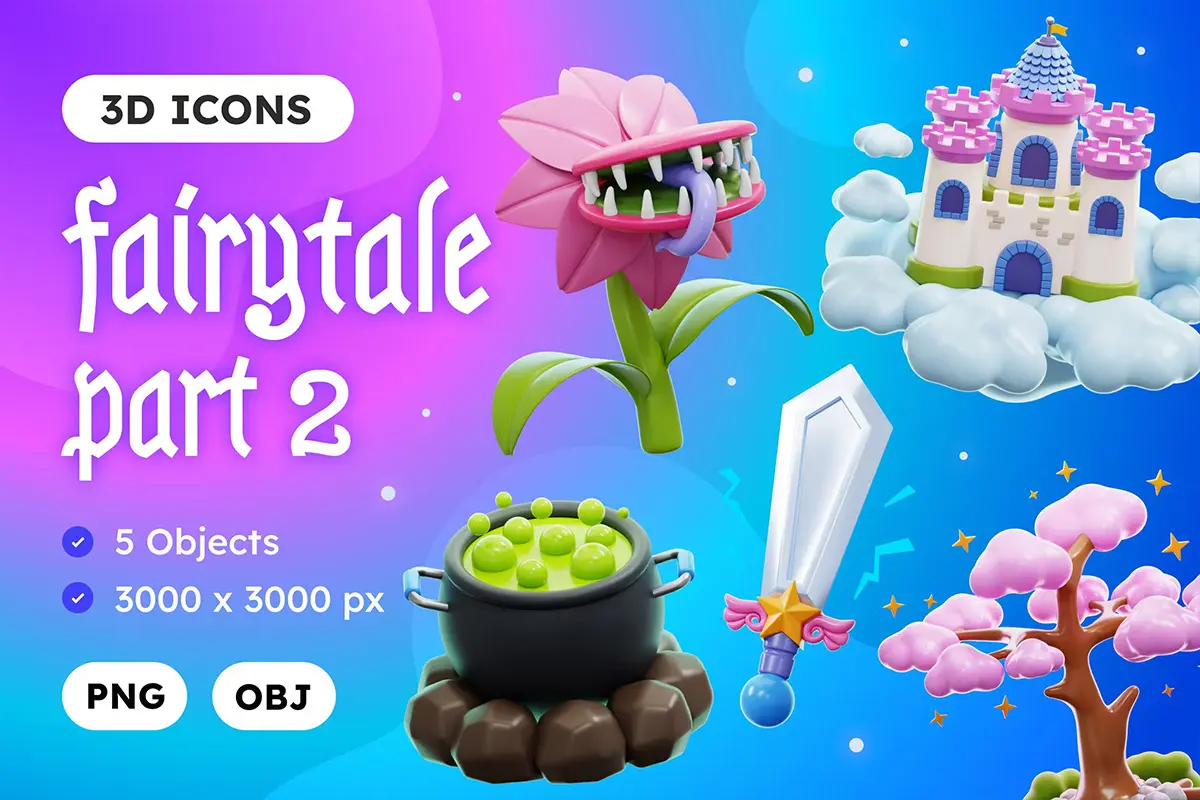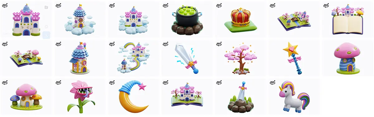 Fairytale 3D Icon Pack 20款童话世界儿童乐园梦幻城堡可爱卡通魔法动植物3D图标icon设计webp免抠图素材下载