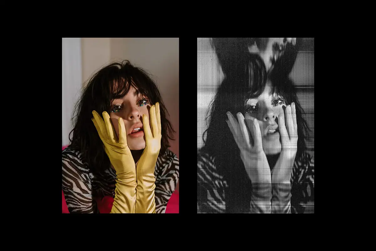 Distorted Printer Photo Effect 照片图像扫描打印失真ps特效样机素材
