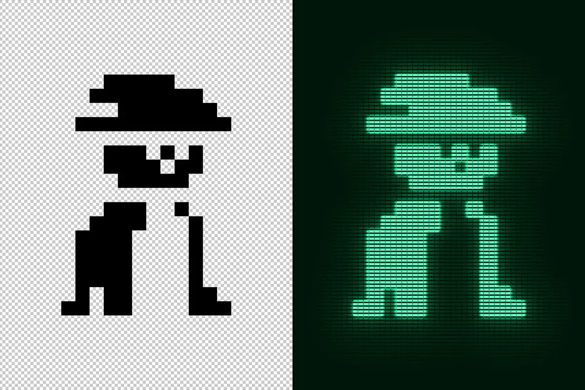 Vintage CRT Monitor Effect 复古老式CRT显示器效果模拟块状像素风文本LOGO设计PS特效样机