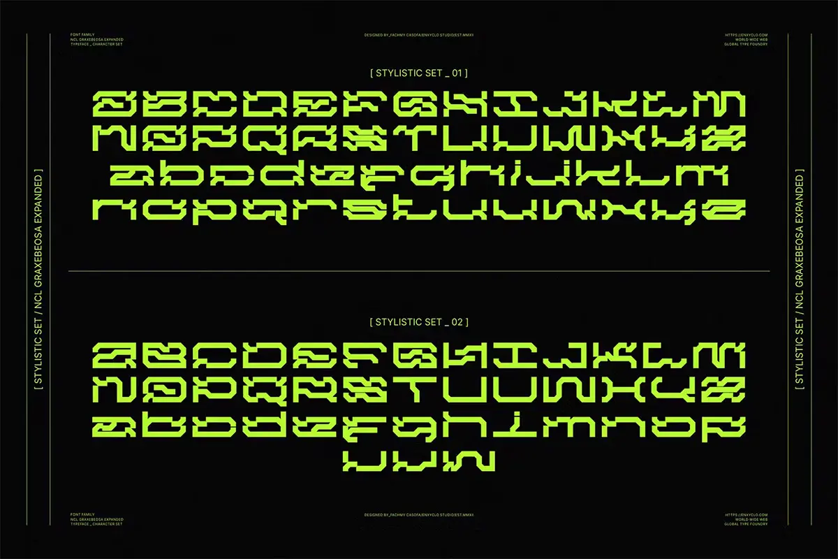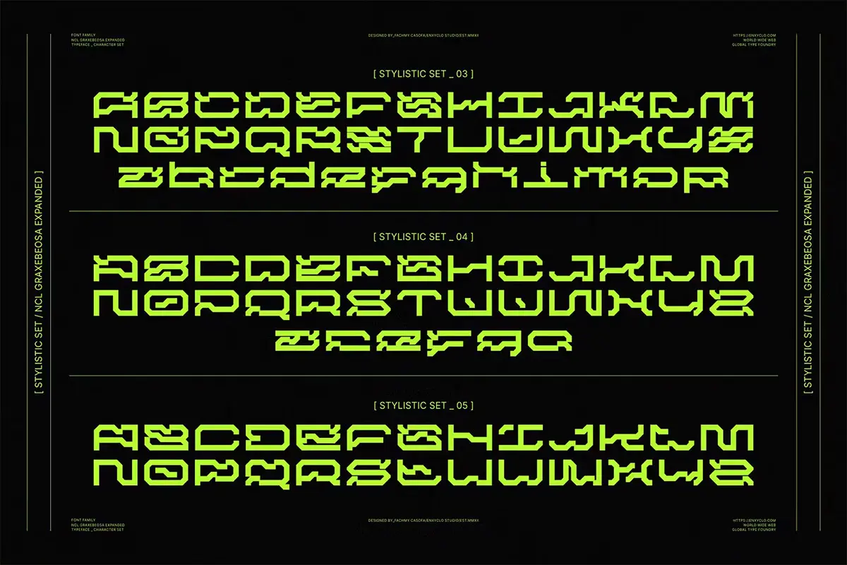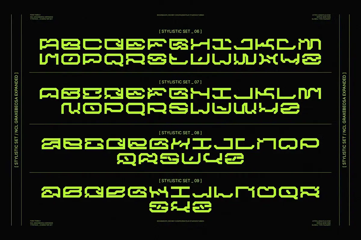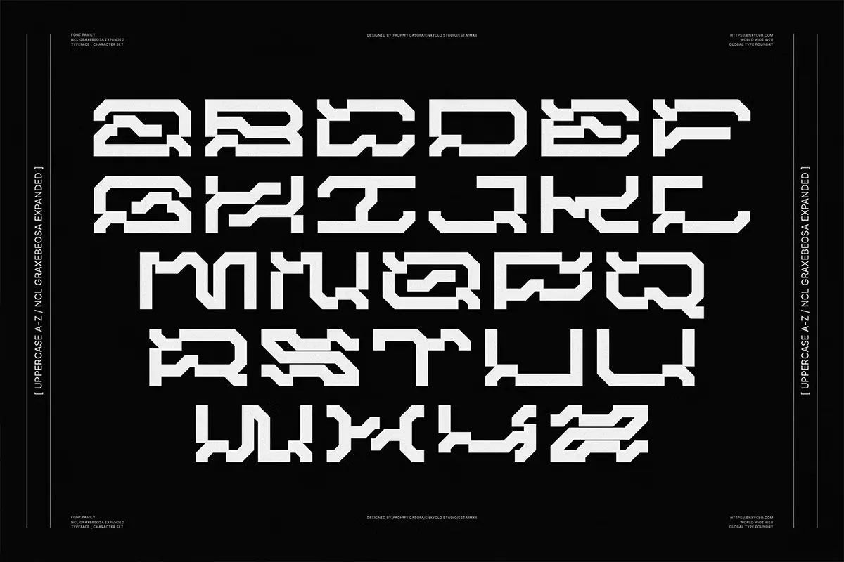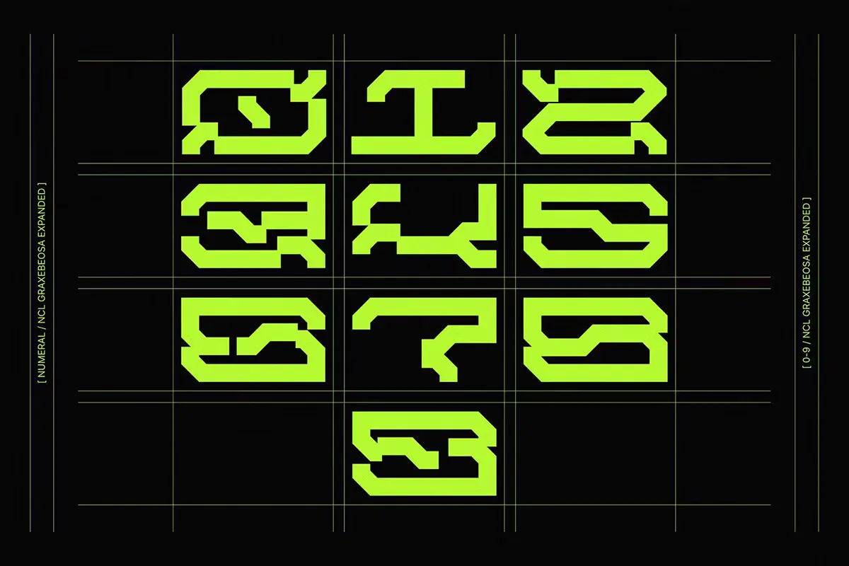NCL Graxebeosa Expanded 4款未来科幻机甲赛博朋克潮流机能电竞游戏潮牌海报装饰英文字体
