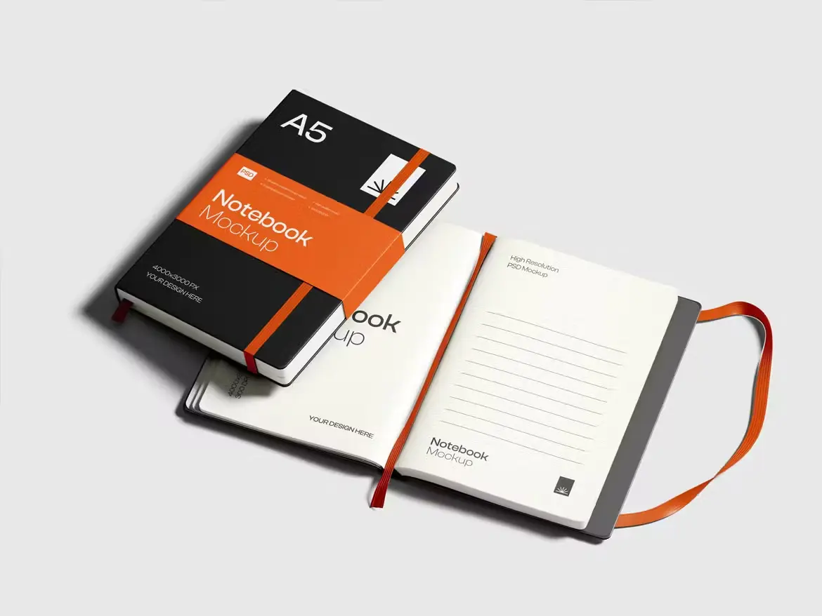 Notebook Mockup 软面笔记本记事本日记本模型品牌logo封面内页设计贴图ps文具样机素材