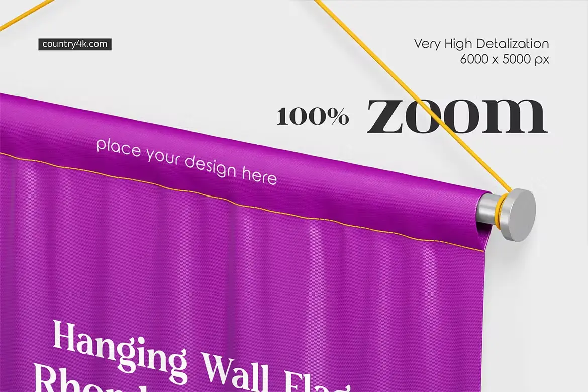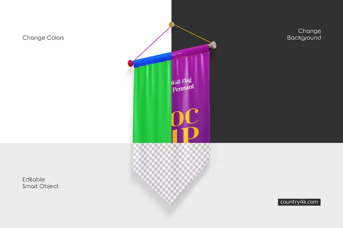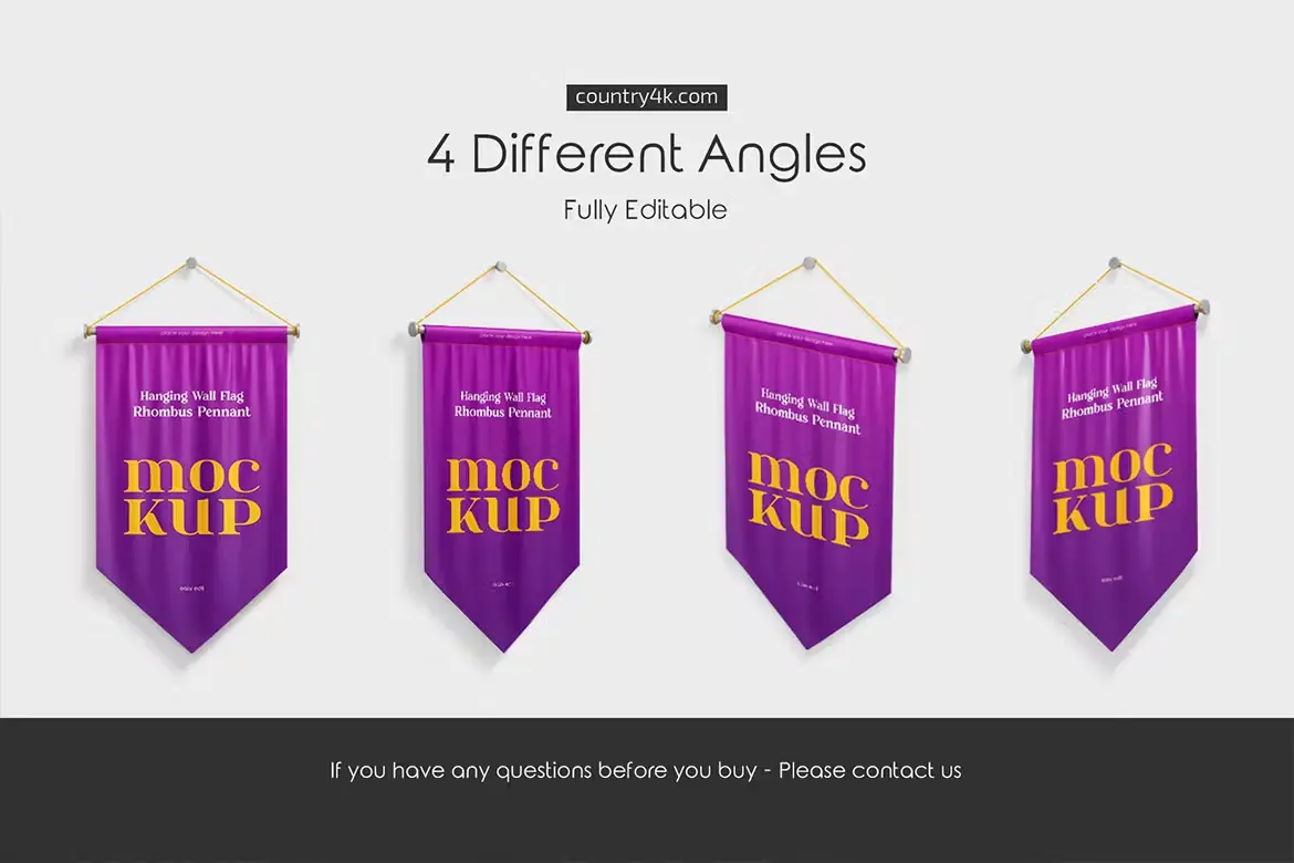 Hanging Wall Flag Rhombus Pennant Mockup Set 悬挂在墙上的三角旗帜锦旗模型logo标识广告展示设计贴图ps样机素材