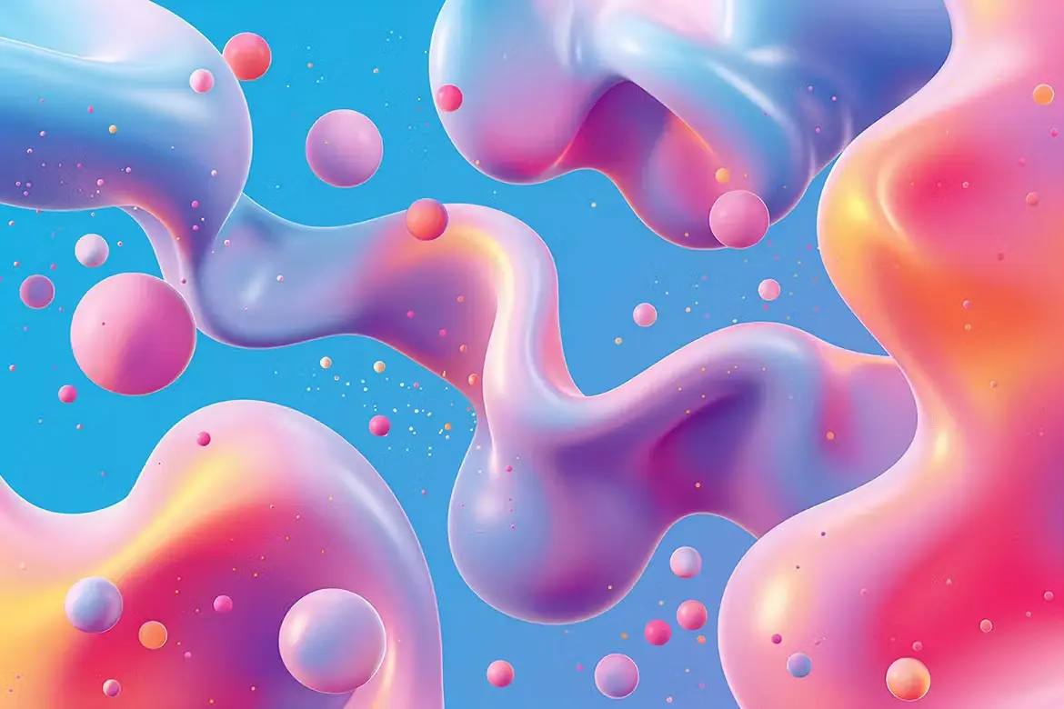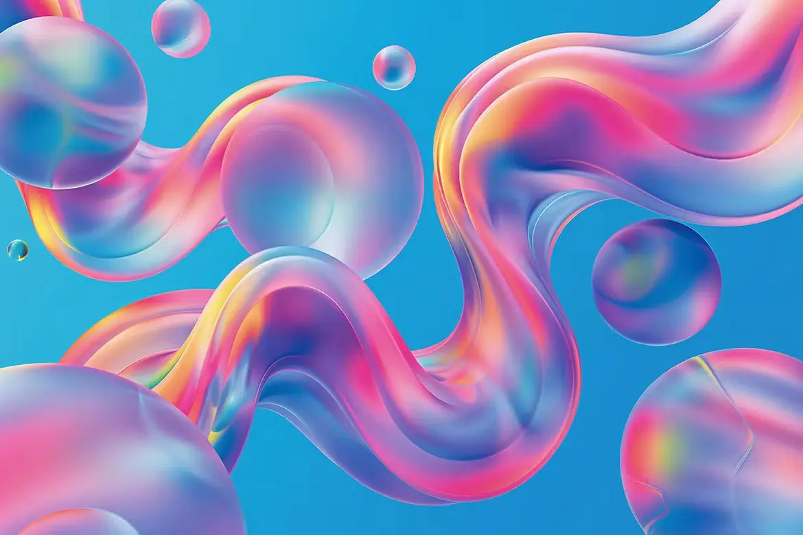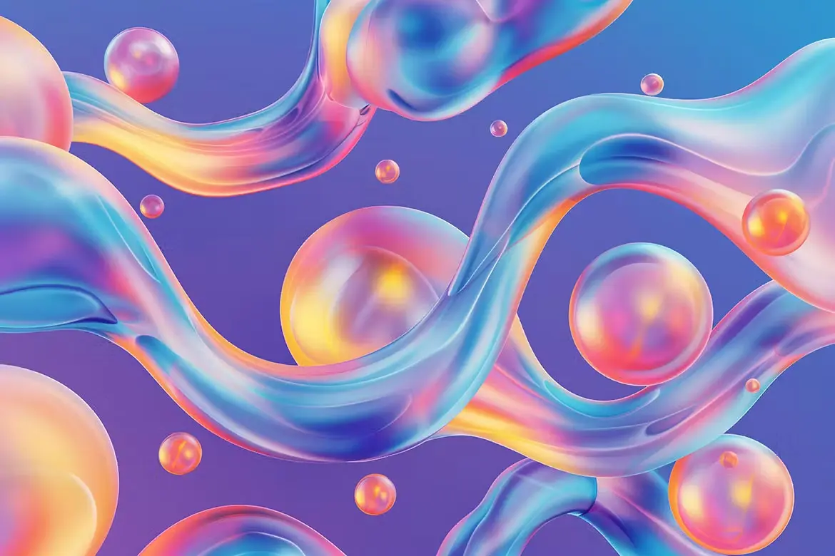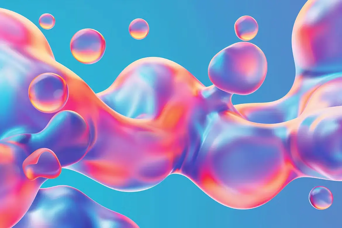 Bright Gradient Metaball Shape Backgrounds 10款时尚科幻华丽镭射气泡水珠扭曲渐变科技海报背景底纹图片素材