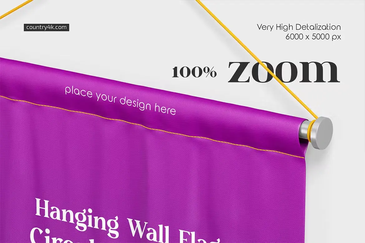 Hanging Wall Flag Circular Pennant Mockup Set 悬挂在墙上的旗帜锦旗模型logo标识广告展示设计贴图ps样机素材