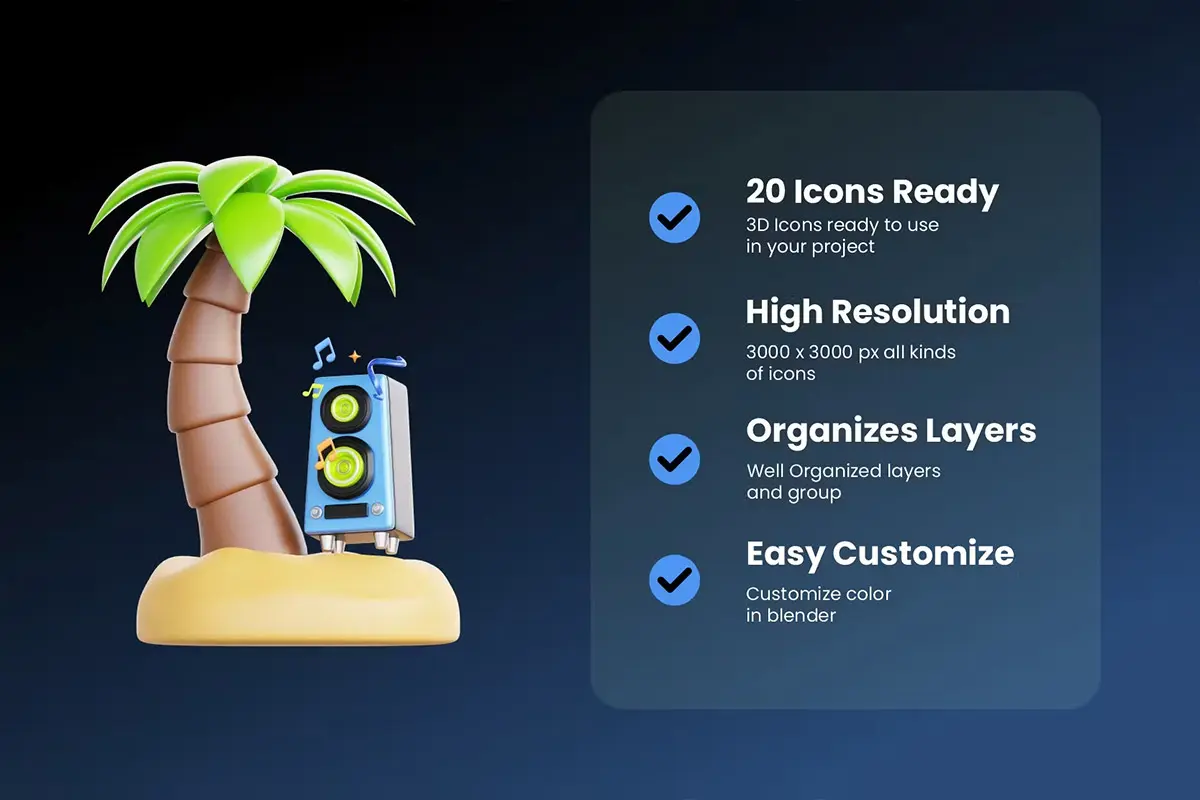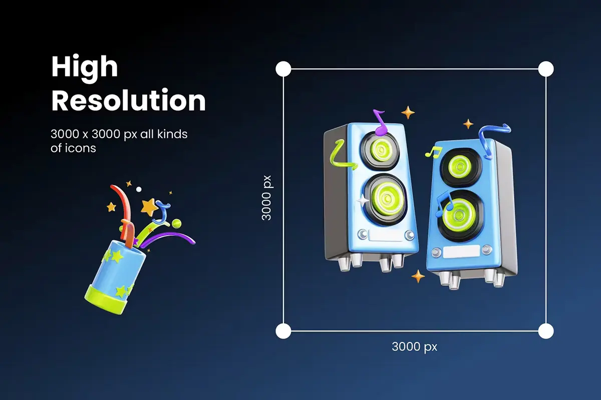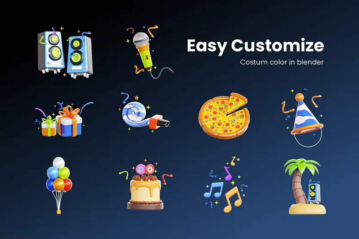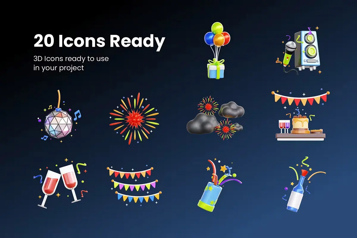 Party 3D Icon Pack 20款活动派对庆典装饰元素3D图标icon设计素材webp免抠图片