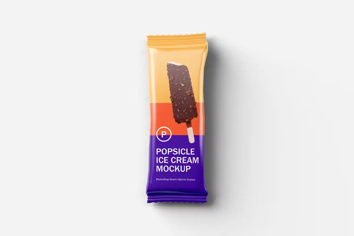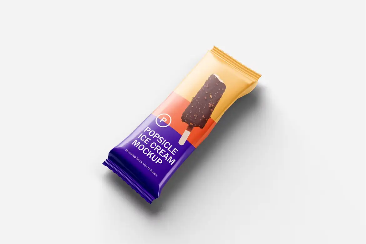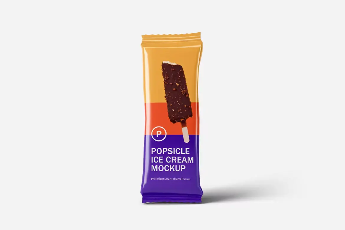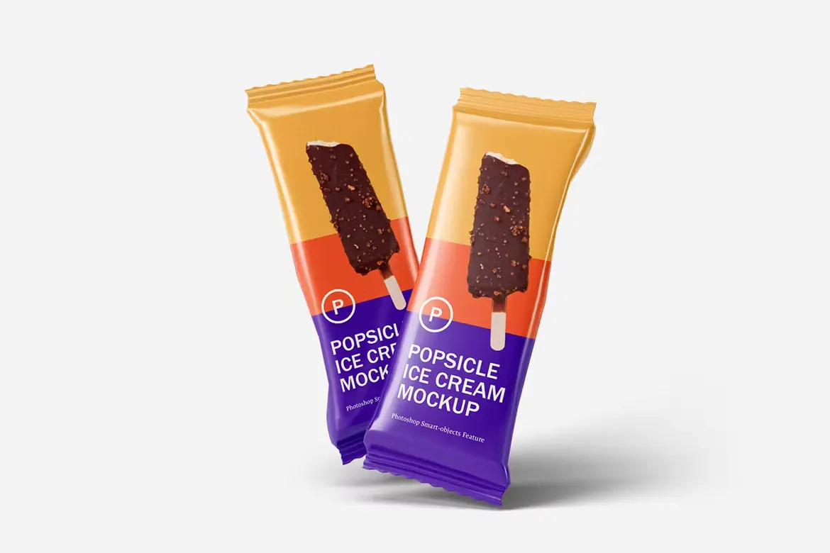 Popsicle Ice Cream Mockups 冷饮雪糕冰棍棒冰零食产品包装袋设计贴图ps样机素材展示效果图