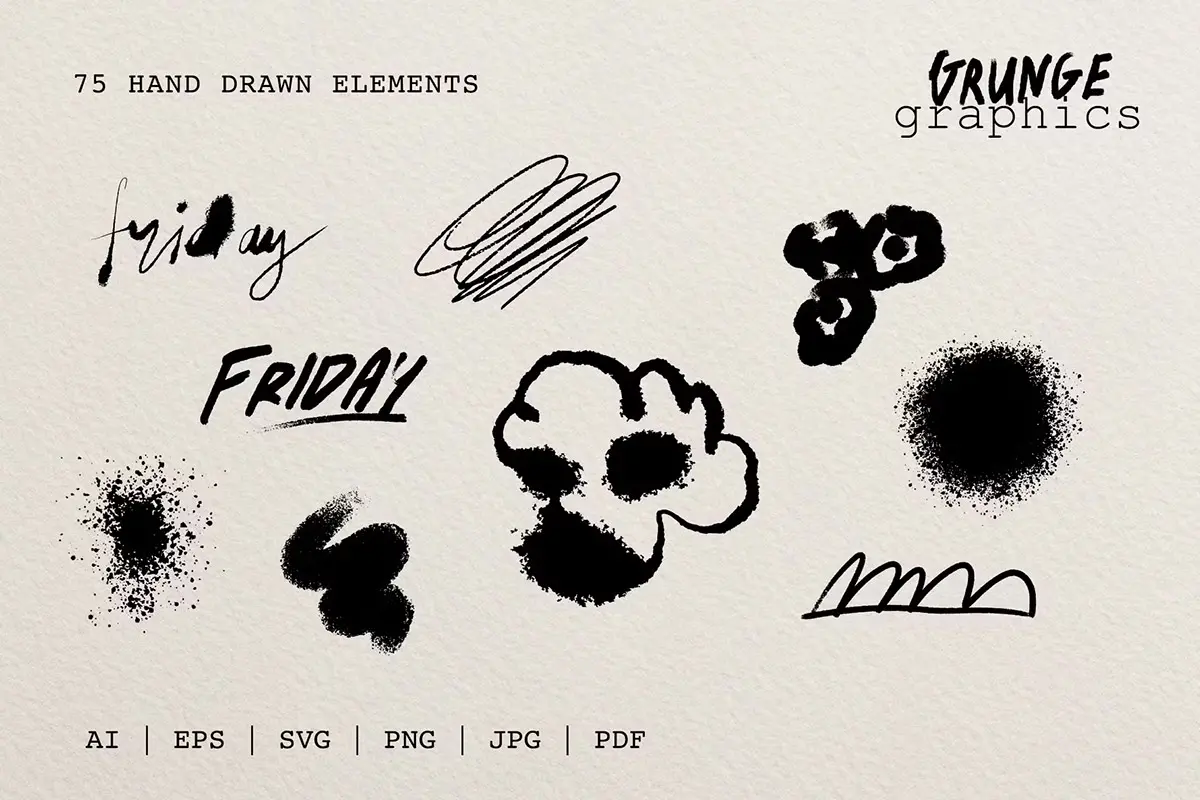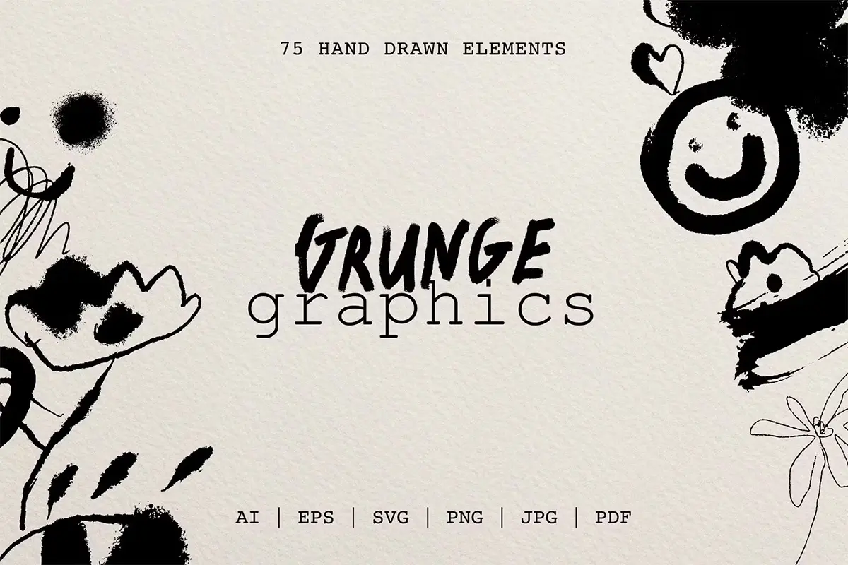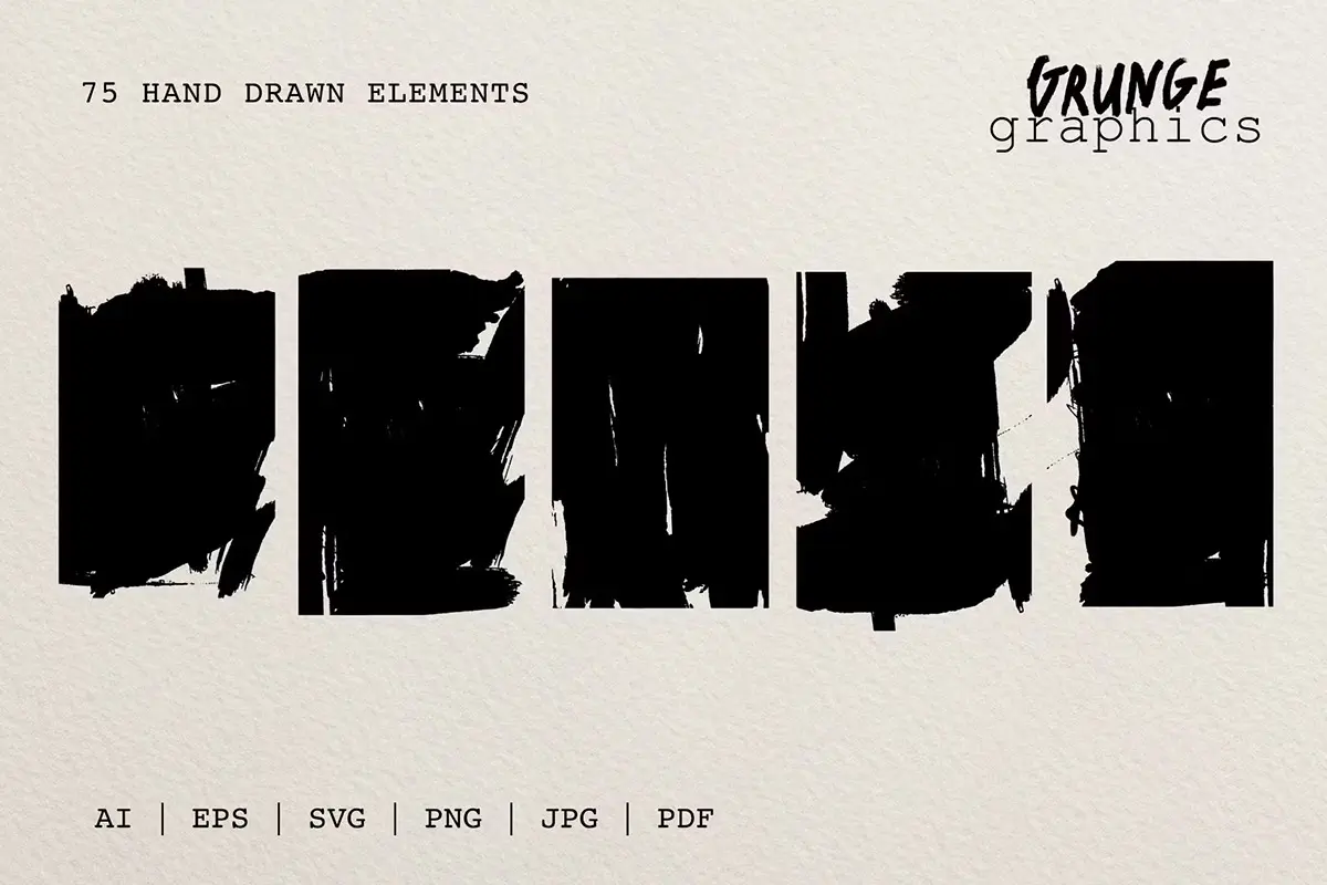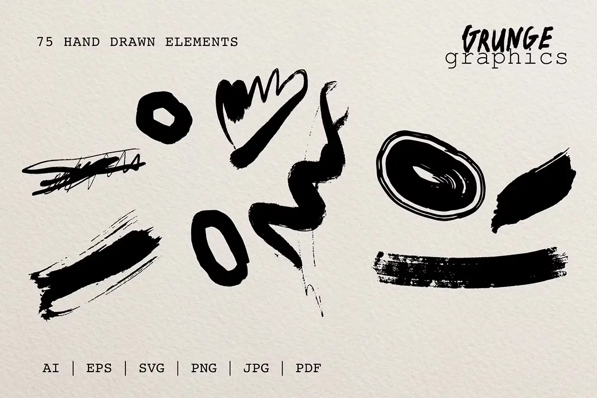 75+ Drawn & Painted Grunge Graphics 78款复古潮流手绘喷漆毛笔涂鸦垃圾摇滚标记符号插画矢量设计素材