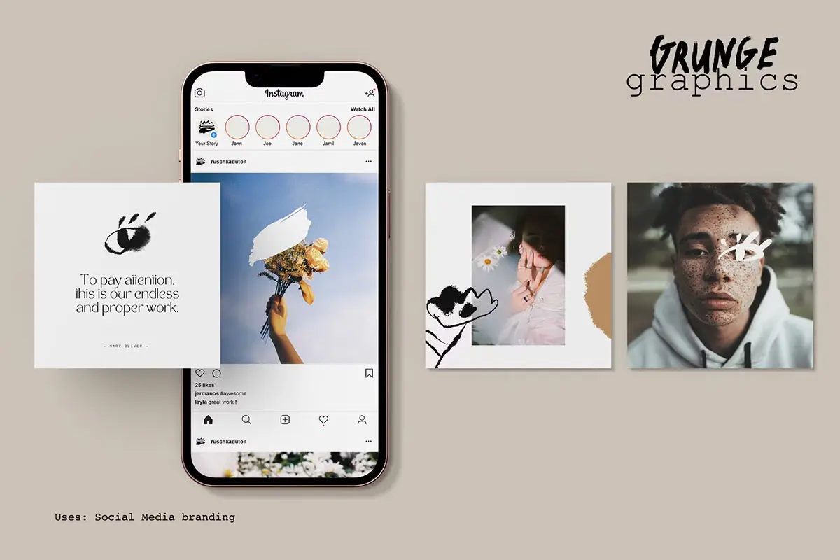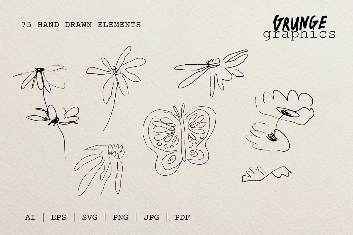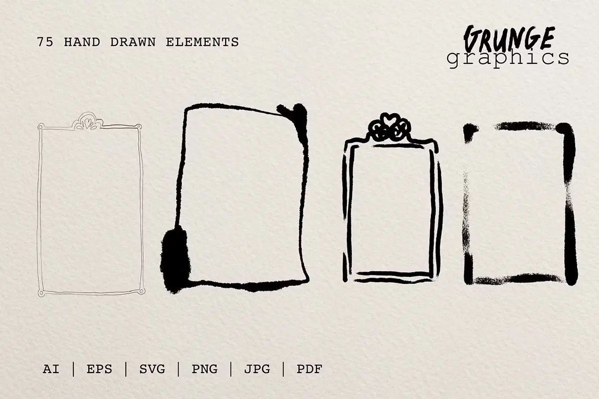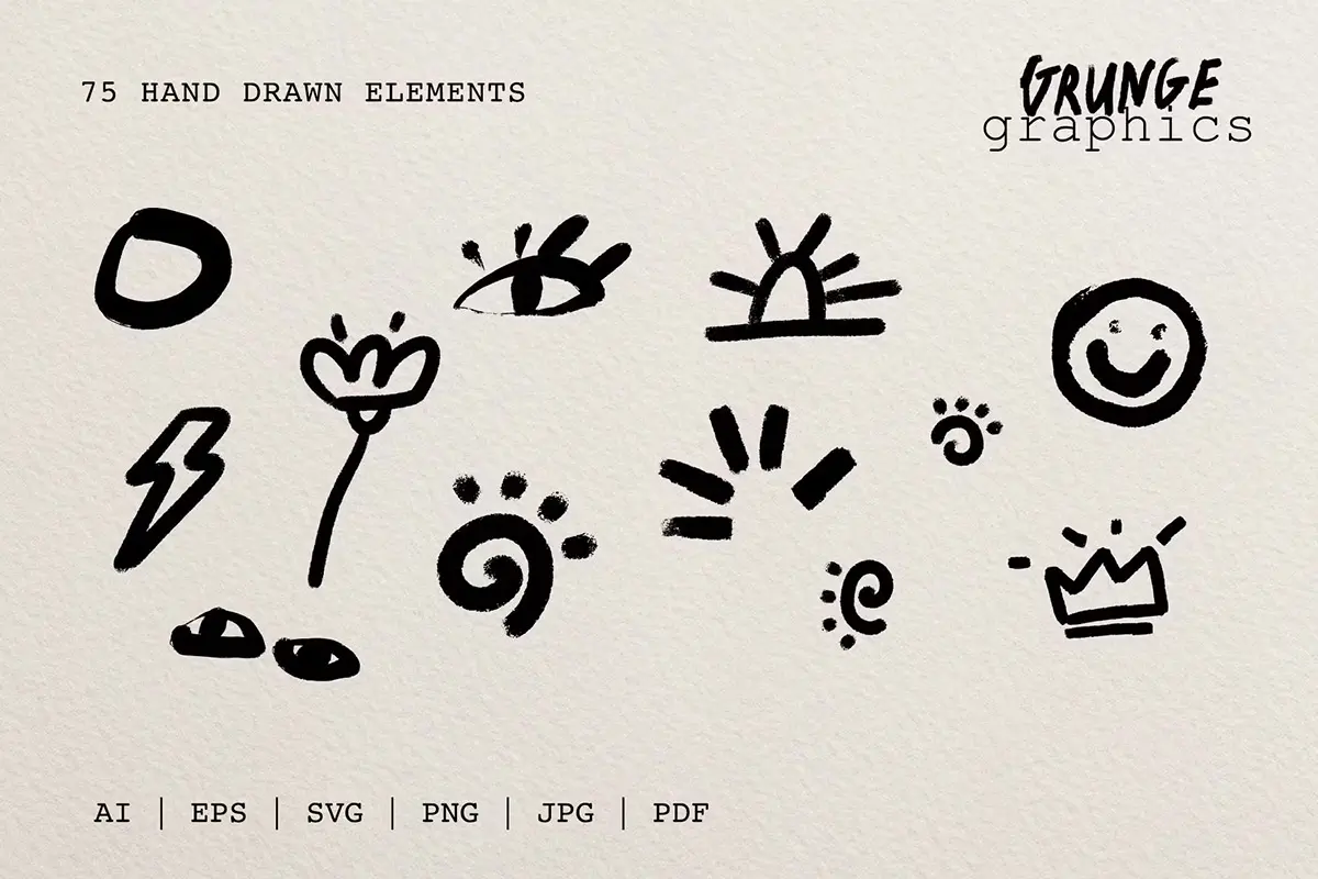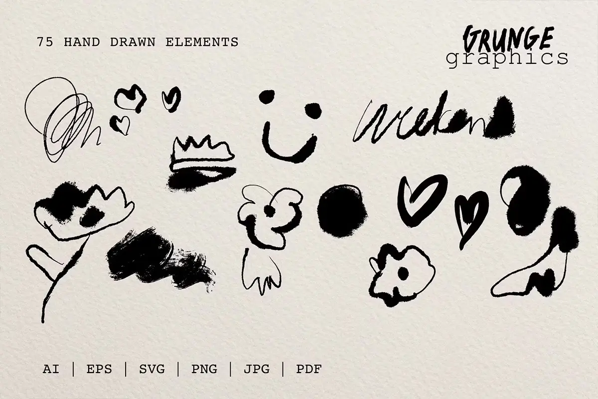 75+ Drawn & Painted Grunge Graphics 78款复古潮流手绘喷漆毛笔涂鸦垃圾摇滚标记符号插画矢量设计素材