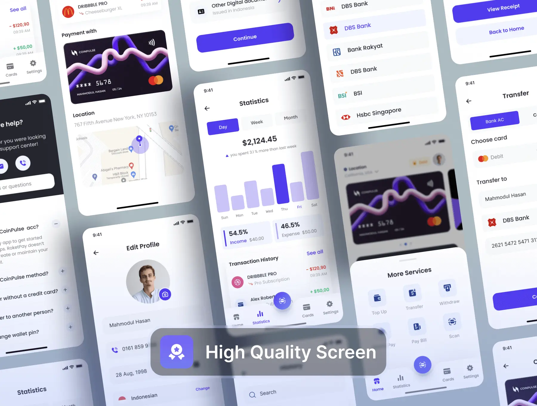 CoinPulse – Finance App UI Kit 56+屏金融科技银行理财货币兑换APP用户界面设计Figma模板套件