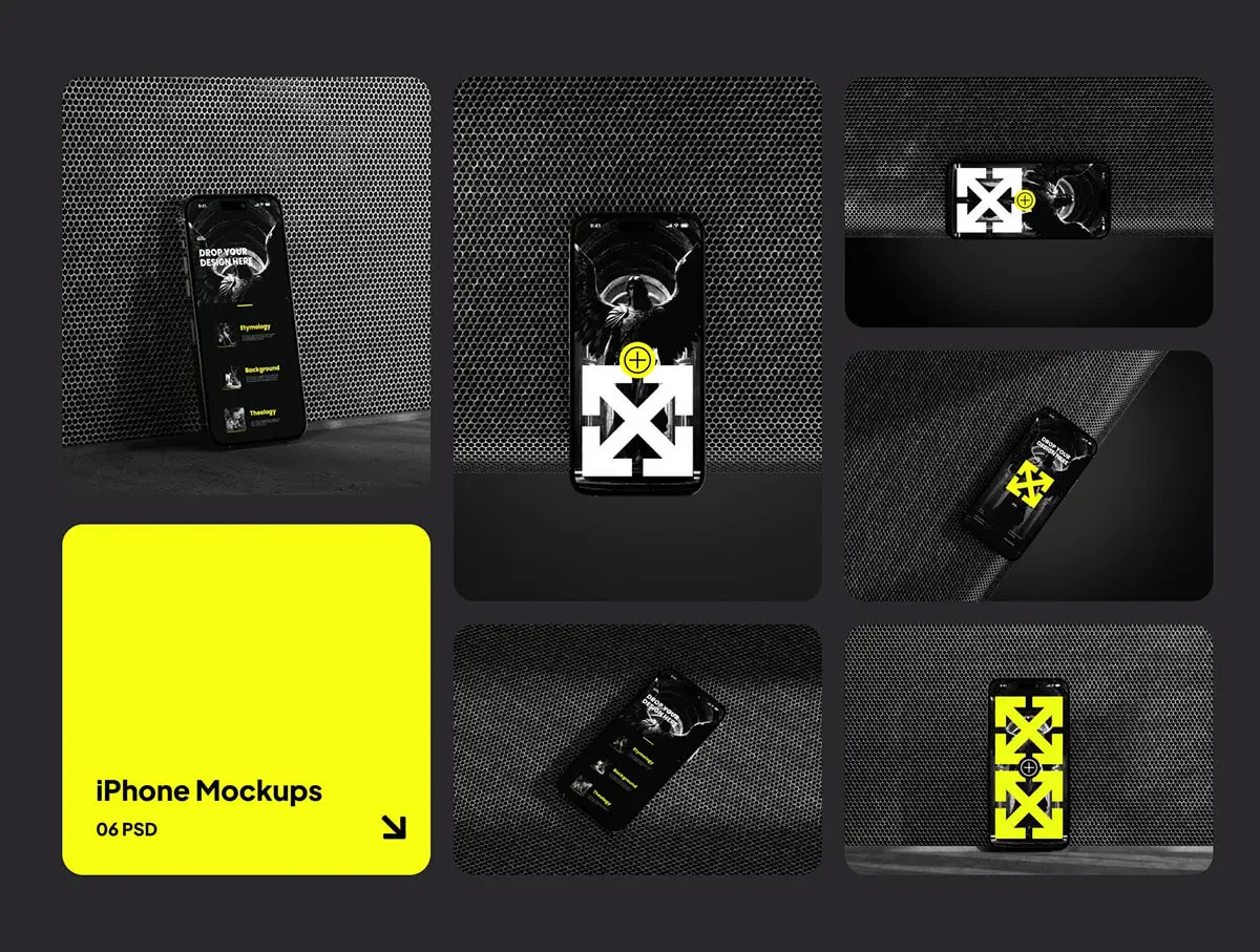 Mikaila iPhone Mockups 6款极简工业风iPhone15手机广告ui设计作品展示效果图ps样机素材